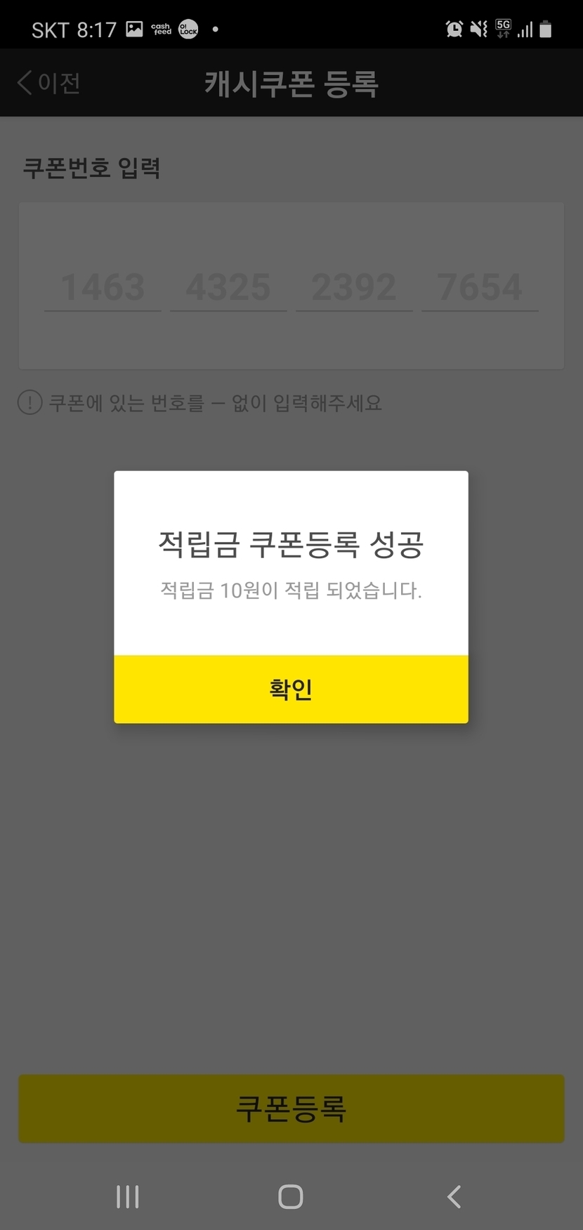 캐슬미션 달성으로 얻은 캐시들 입니다.