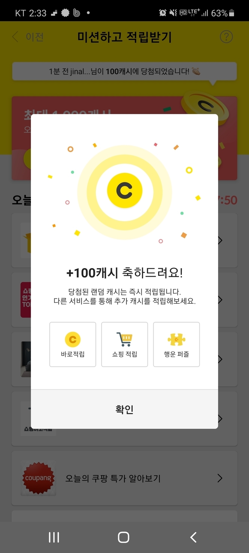20.11.22 135 읽음 100캐시 선물 받았어요 아랑바라기 구독하기 21 21 콘텐츠의 수익 4 점심먹고 루카스나인 스윗라떼 마시며오후 캐시적립하고 있는데아차! 캐슬 오후 미션 두개가 있었지~~미션완료하고비나이다 비나이다 주문을 외우며 클릭......저한테도 선물이...100캐시가 눈앞에~~어머나~감사합니다울냥이들이 주인 왜저래 표정으로 보고 있네요 21 0 / 300 입력 채널을 구독하시겠어요? 아랑바라기 구독하기