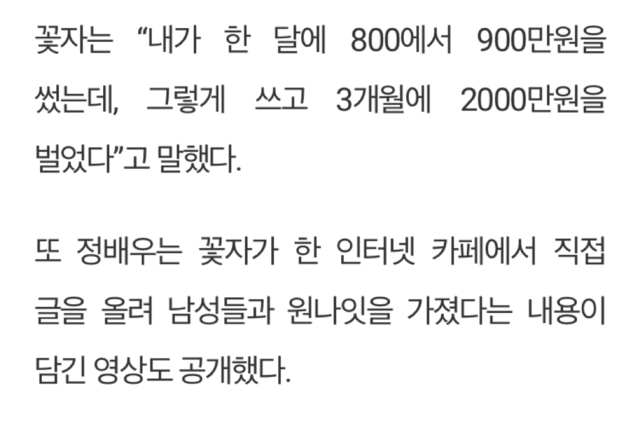 19.08.16 630 읽음 유튜버 정배우 “BJ꽃자, 한 달에 2000만원 벌은 성매매 업소 출신” 닉엄읍둥 구독하기 0 0 콘텐츠의 수익 0 지금 네이버 실검 1위..진짜 돌았다... 0 0 / 300 입력