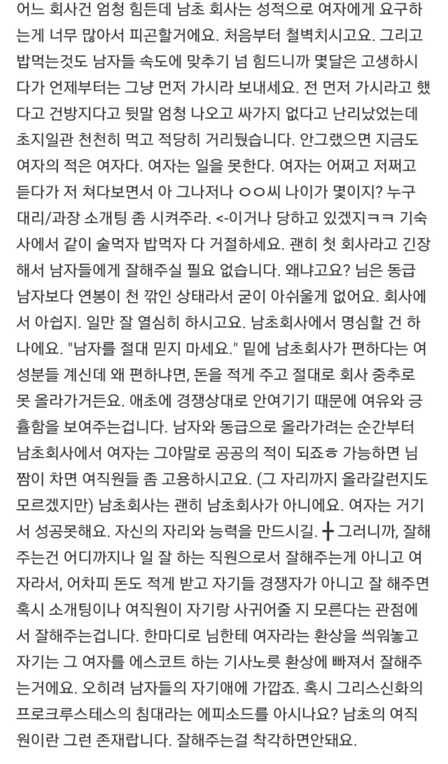 19.08.16 1,136 읽음 남초회사 들어가는 여자신입이 주의해야 할 점 드러와봐 구독하기 0 1 콘텐츠의 수익 0 와 ㅇㄱㄹㅇ 남초회사편한이유 아예 경쟁상대로도 안쳐주기때문 개공감 1 0 / 300 입력