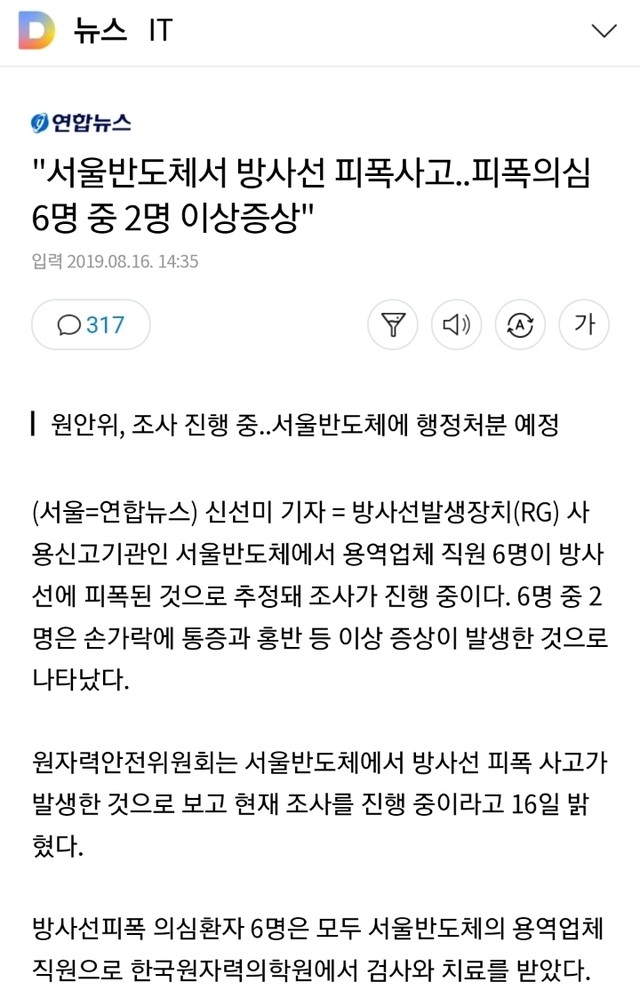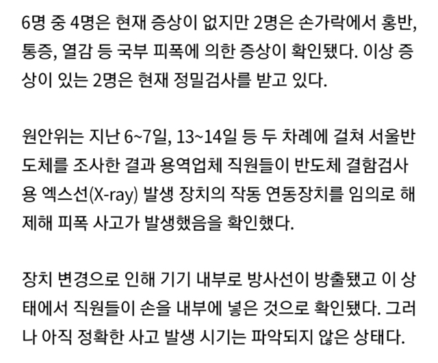 19.08.16 447 읽음 "서울반도체서 방사선 피폭사고..피폭의심 6명 중 2명 이상증상" i0YT2K 구독하기 0 0 콘텐츠의 수익 0 헐 어떻게 이게 무슨 일이래 0 0 / 300 입력