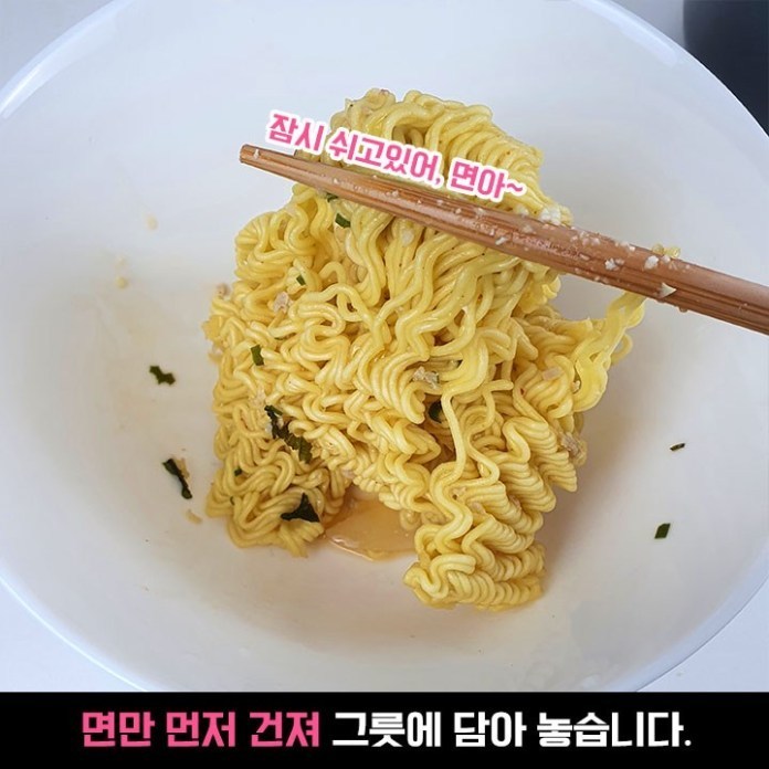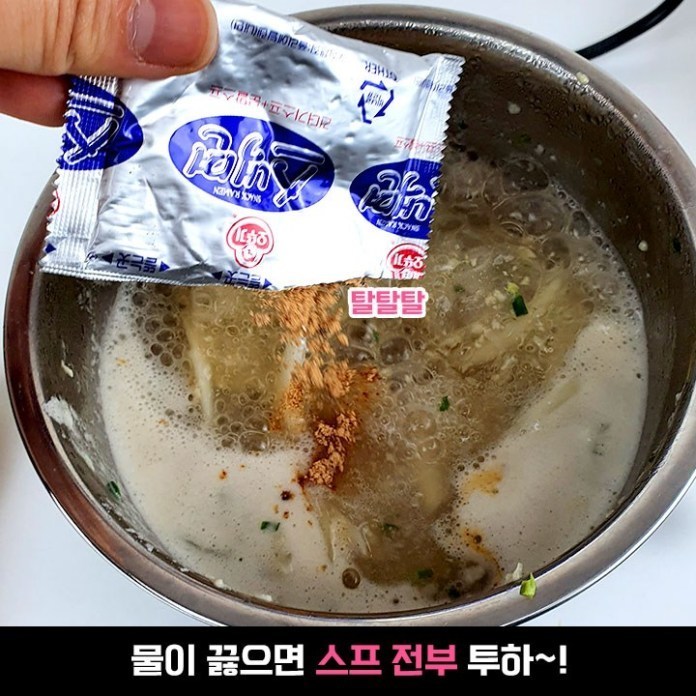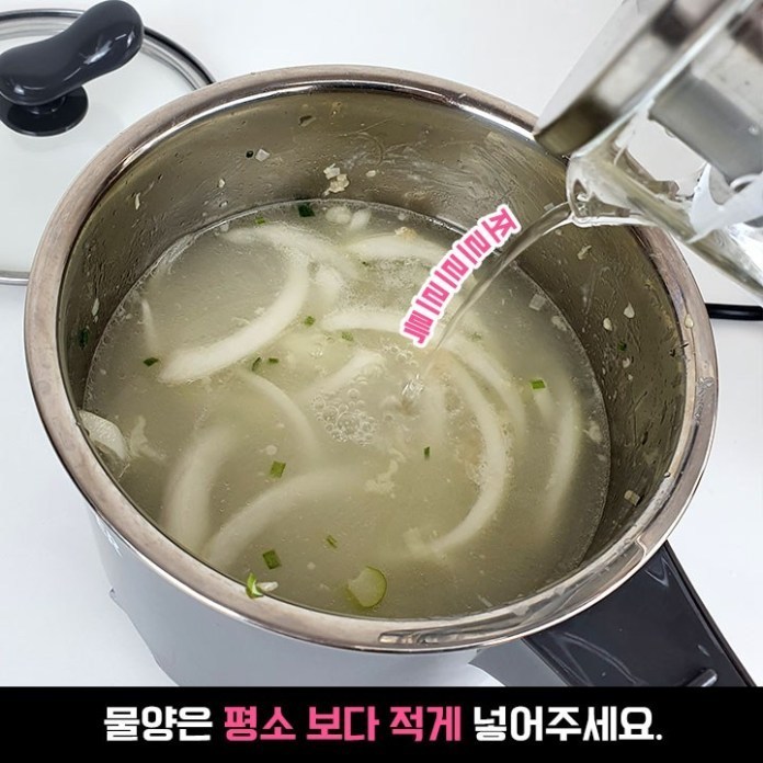 물은 평소 라면을 끓이시는 물양보다 적게
