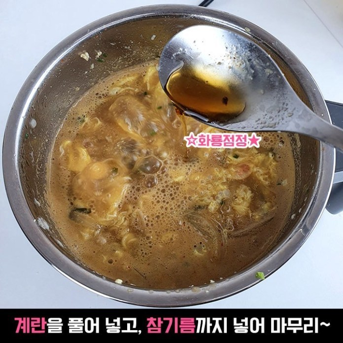 계란을 풀어 준 후 참기름