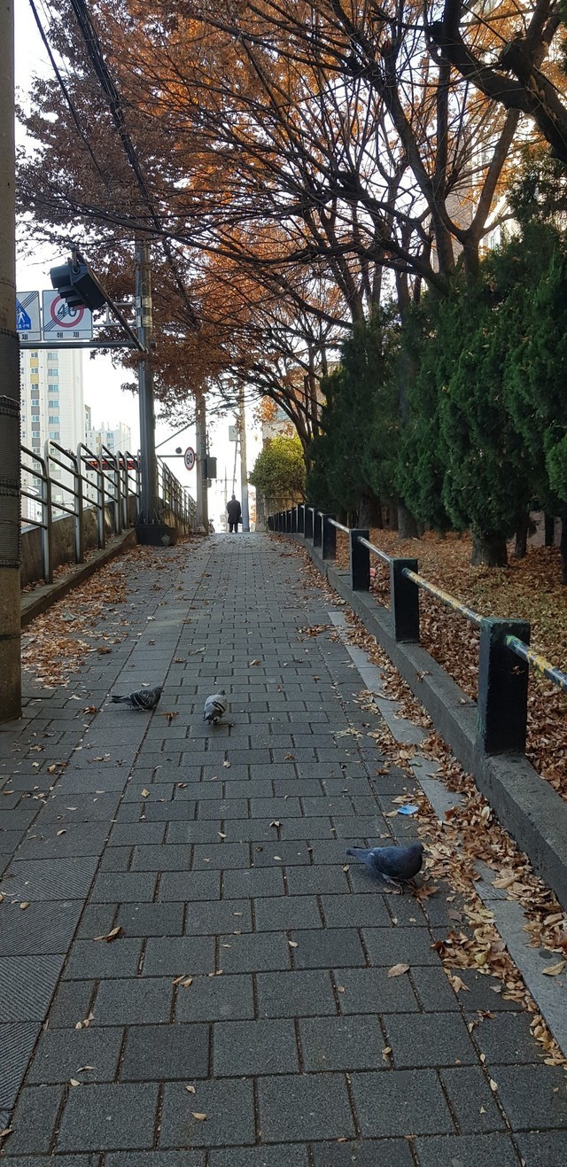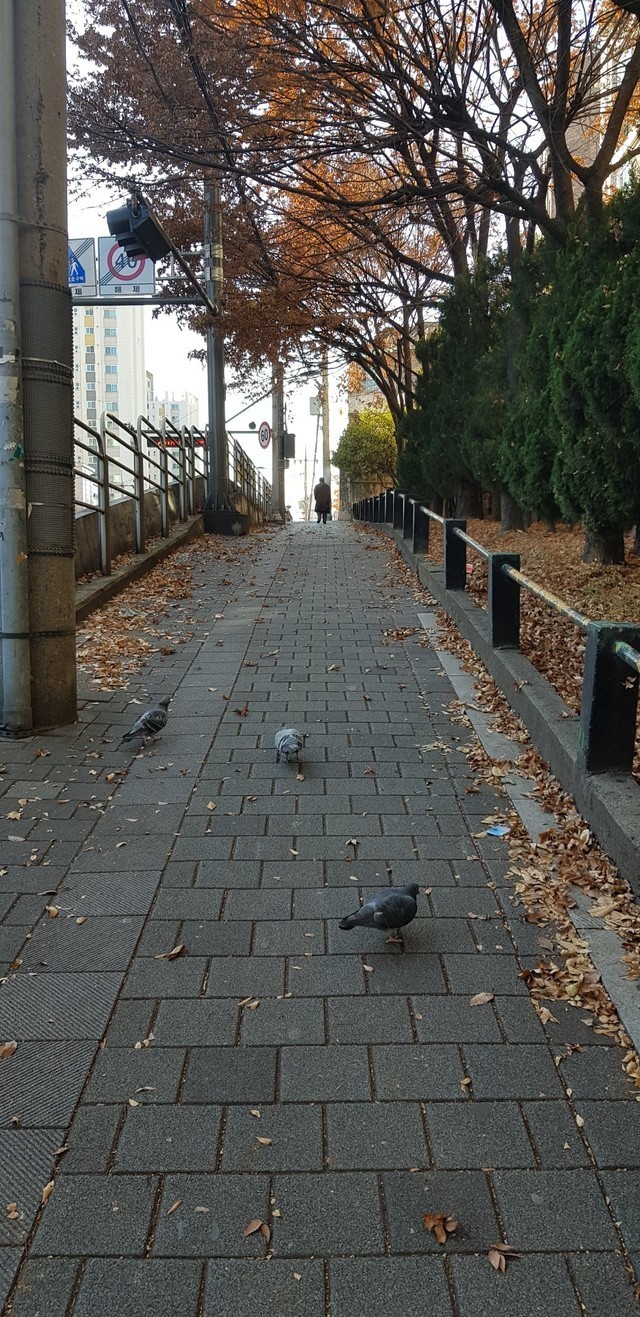 추운 날씨에 비들기들이 먹이를 ~~~