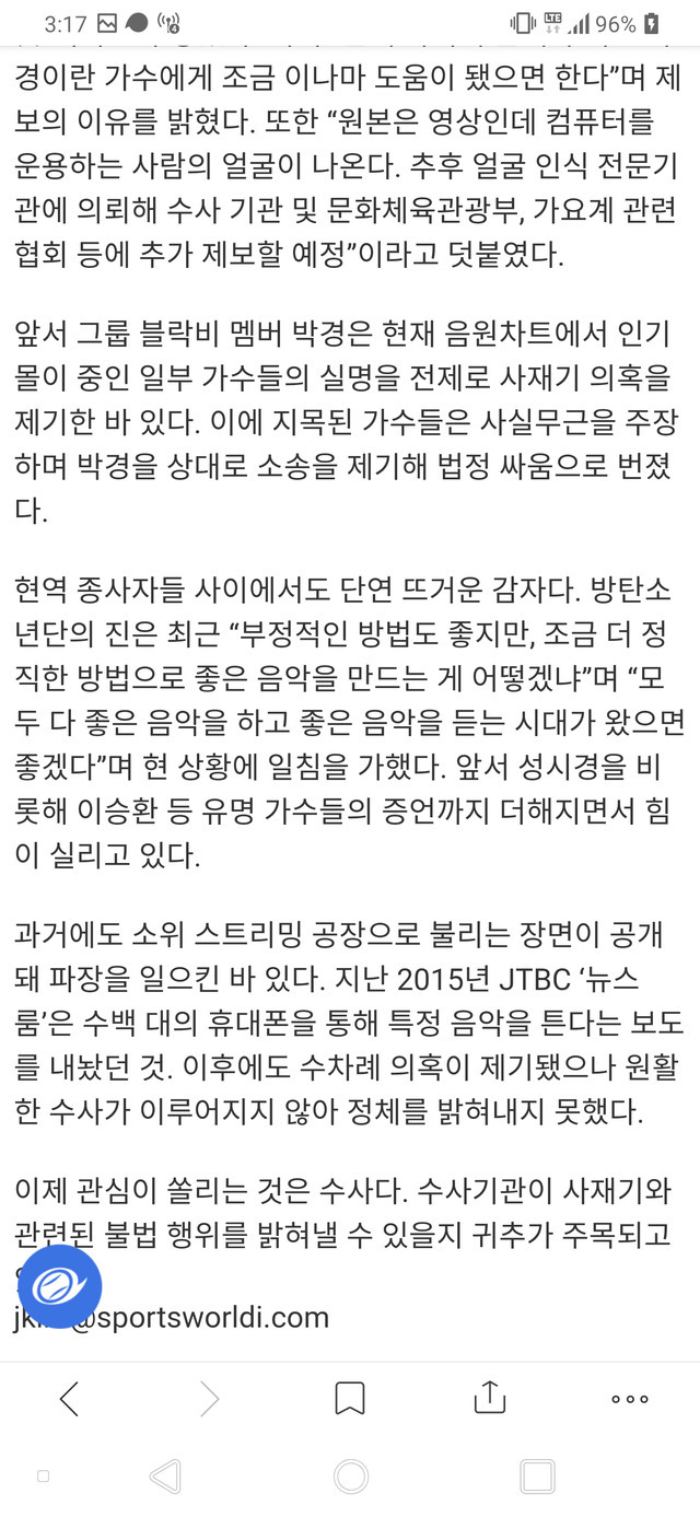 19.12.05 1,832 읽음 음원사재기 드뎌 수사착수( ㅎㄷㄷ) 쏘티TV 구독하기 15 82 콘텐츠의 수익 1,484 음원사재기 여러모로 논란도 많고 의심쩍은 부분도 많은데 수사를 시작하나보네요박경이 욕도 마니 먹었지만 큰일한거 같네요다들 열심히 노력하는 사람들 피해안주도록공정하게 대결하길 원해요~~^^ 82 0 / 300 입력