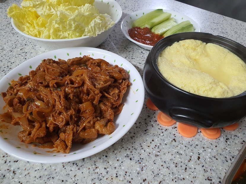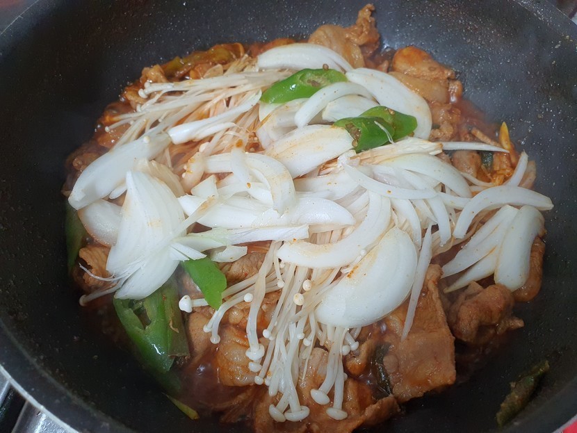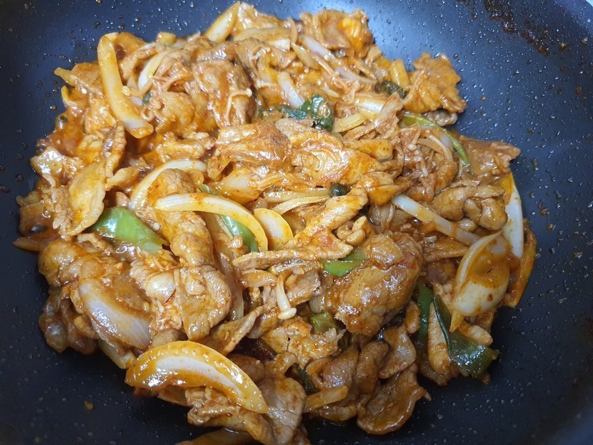 20.12.03 320 읽음 맛점하세요 jmani♡ 구독하기 10 13 콘텐츠의 수익 10 백파더 제육볶음 ~~^^1. 기름적당히 두르고 파를 볶아요2. 고기(1근)넣고, 붉은끼가 없어지면 설탕2스푼3. 양념장(물반컵+고추장2+간장4+마늘1) 넣고 물이 자작할때까지 볶아요4. 야채( 양파, 청양고추, 당근) 넣고 볶다가5. 고추가루 1스푼 넣어요6. 후추조금, 참기름조금끝^^매콤하니 맛있네요~~^^ 13 0 / 300 입력