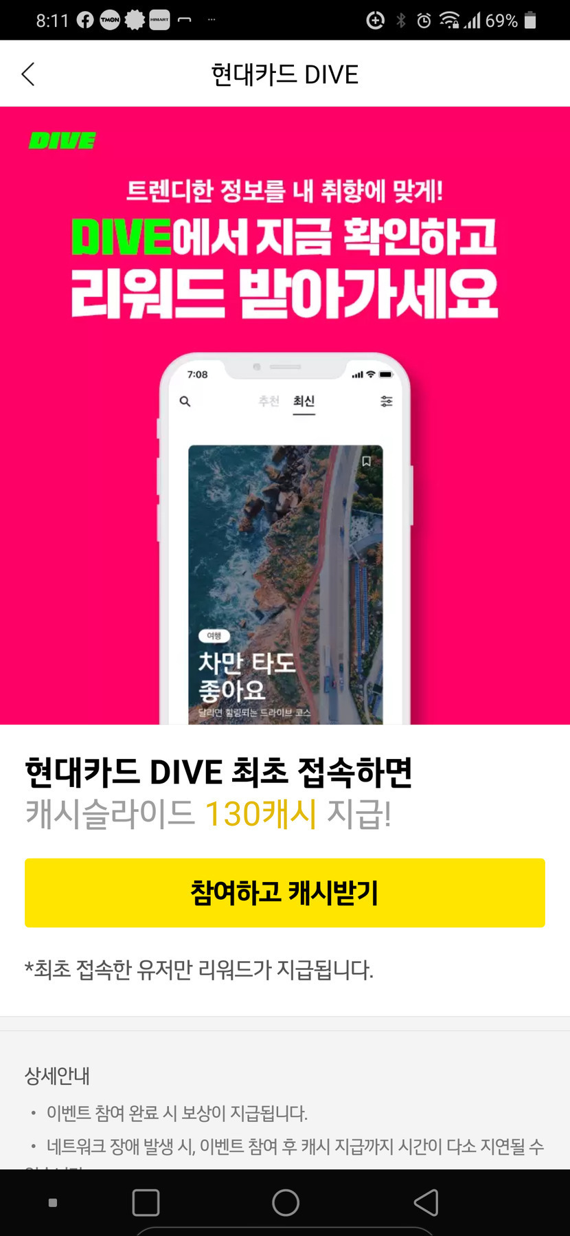 ํ๋์นด๋ DIVE์ฒ์์ ์ 130์บ์