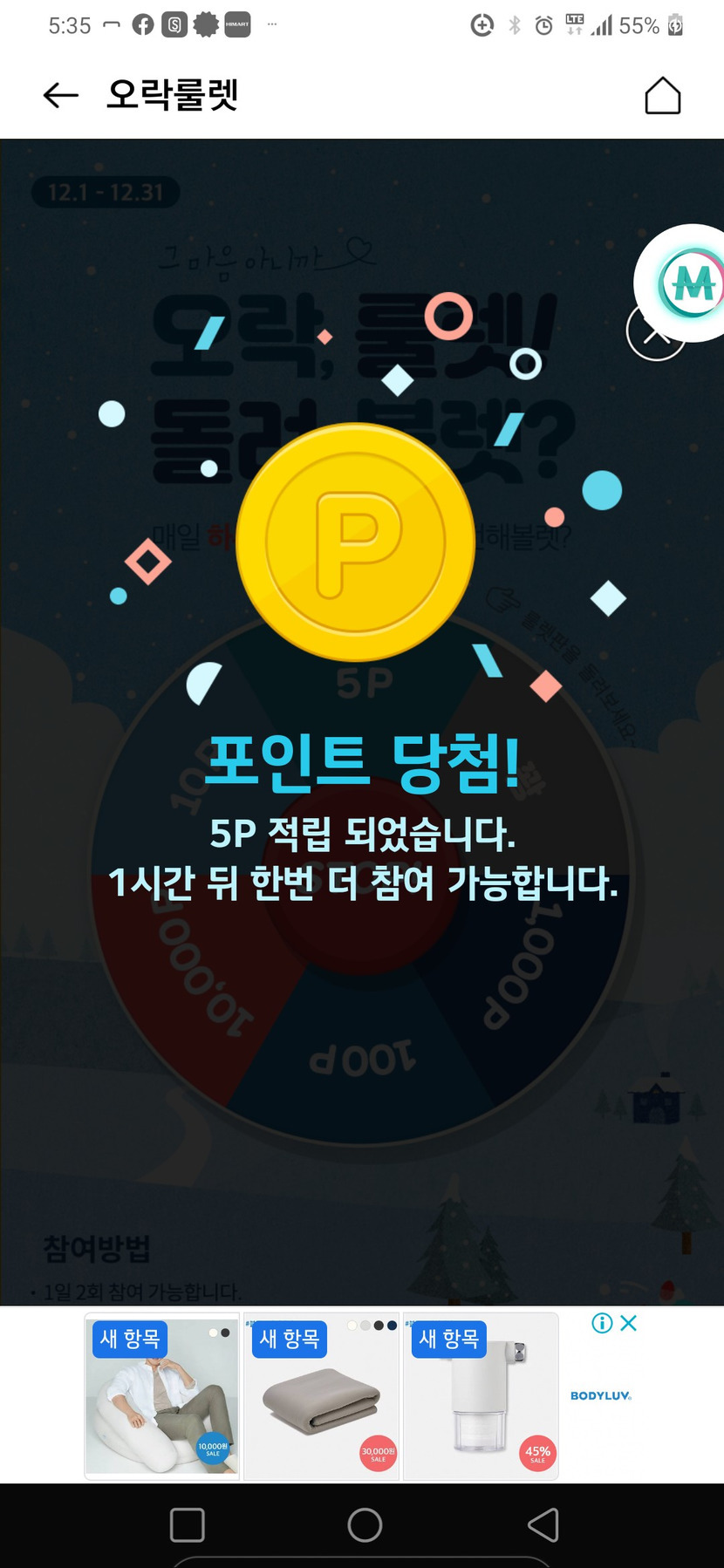 ์ค์ผ์ด์บ์ฌ๋ฐฑ 6์ฒ๋ฌ์ฑ์ผ๋ก 12ํฌ์ธํธ