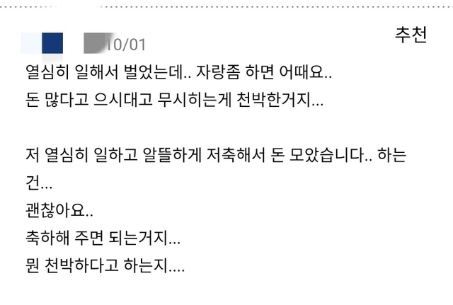 돈 자랑이 천박한 건가요??