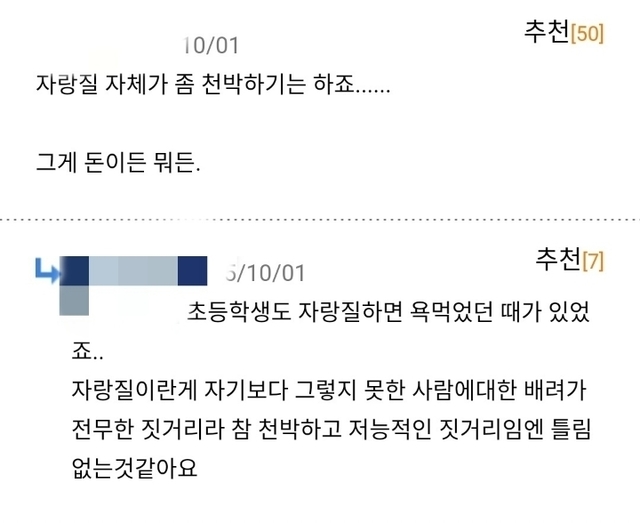 도에 지나친 자랑질은 열등감 ㄹㅇ