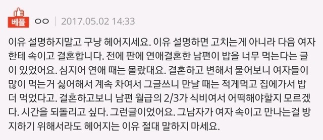 19.08.19 170 읽음 여자들이 남친과 헤어질 때 이유 말해주면 안 되는 이유.jpg 아리랑스탭 구독하기 0 2 콘텐츠의 수익 0 고치는 게 아니라 속임...미래에 다른 여자분을 위해서라도 헤어지는 이유 말하지 말자이것도 그렇지만 말해주면 그 이유를 계속 물고 넘어짐.. 고친다고.. 그냥 남자들처럼 무논리로 헤어지자 염불외워야됨 2 0 / 300 입력