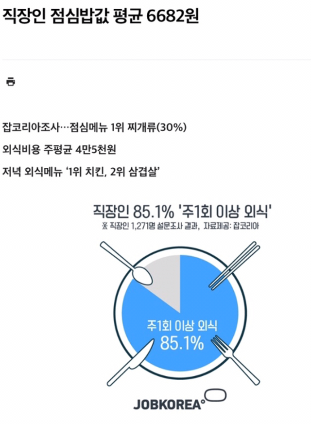 직장인 점심밥값 평균 6682원