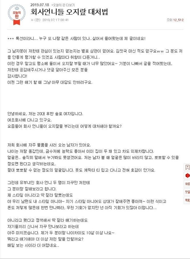 19.08.19 595 읽음 회사 언니들 오지랖 대처법.jpg 피치카토 구독하기 0 1 콘텐츠의 수익 0 ㄹㅇ 베댓 사이다 나였으면 빡쳐서 저렇게 말하고걍 손절하고 혼자 회사 댕김 ;; 남 얘기 쉽게 하는 사람들 개극혐 1 0 / 300 입력