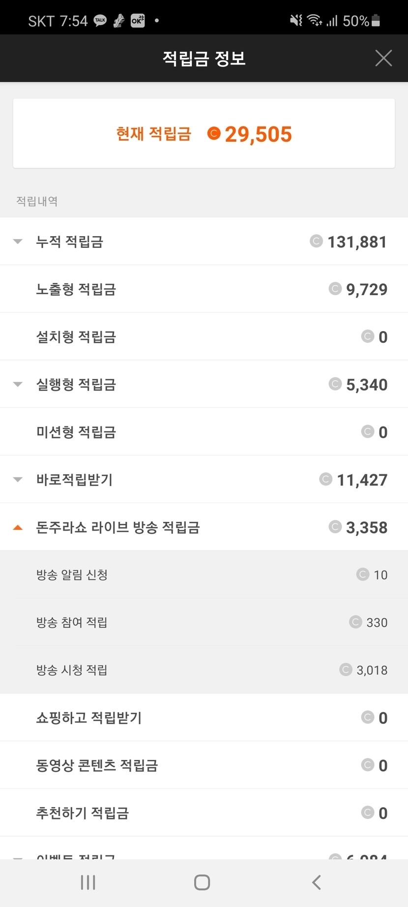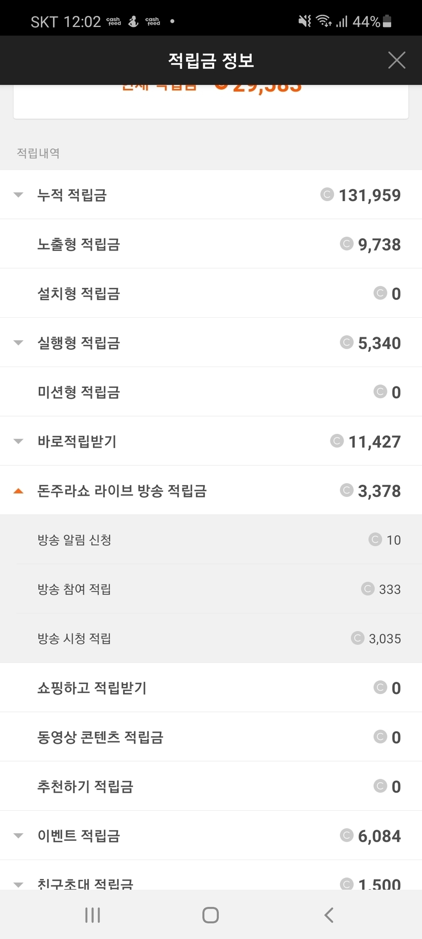 적립금 미리 찍어놓은걸보니 총 17캐시 받았습니다~