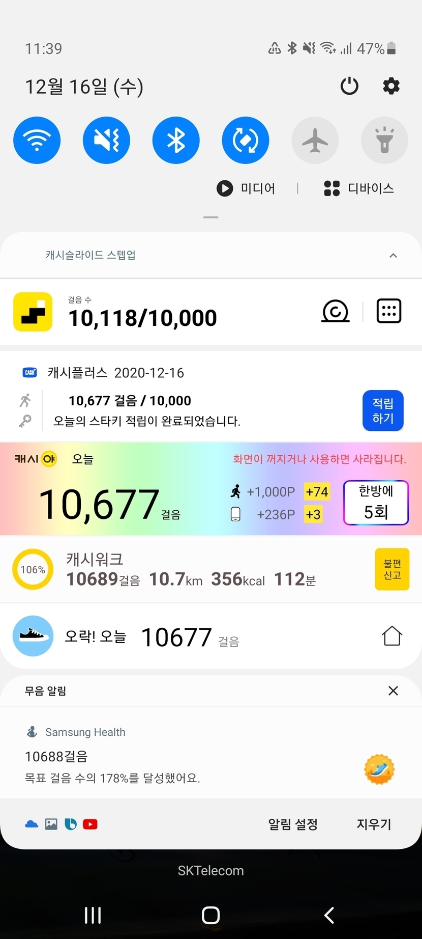 만보기 앱과 돈 쇼 그러고 저녁 끼니~
