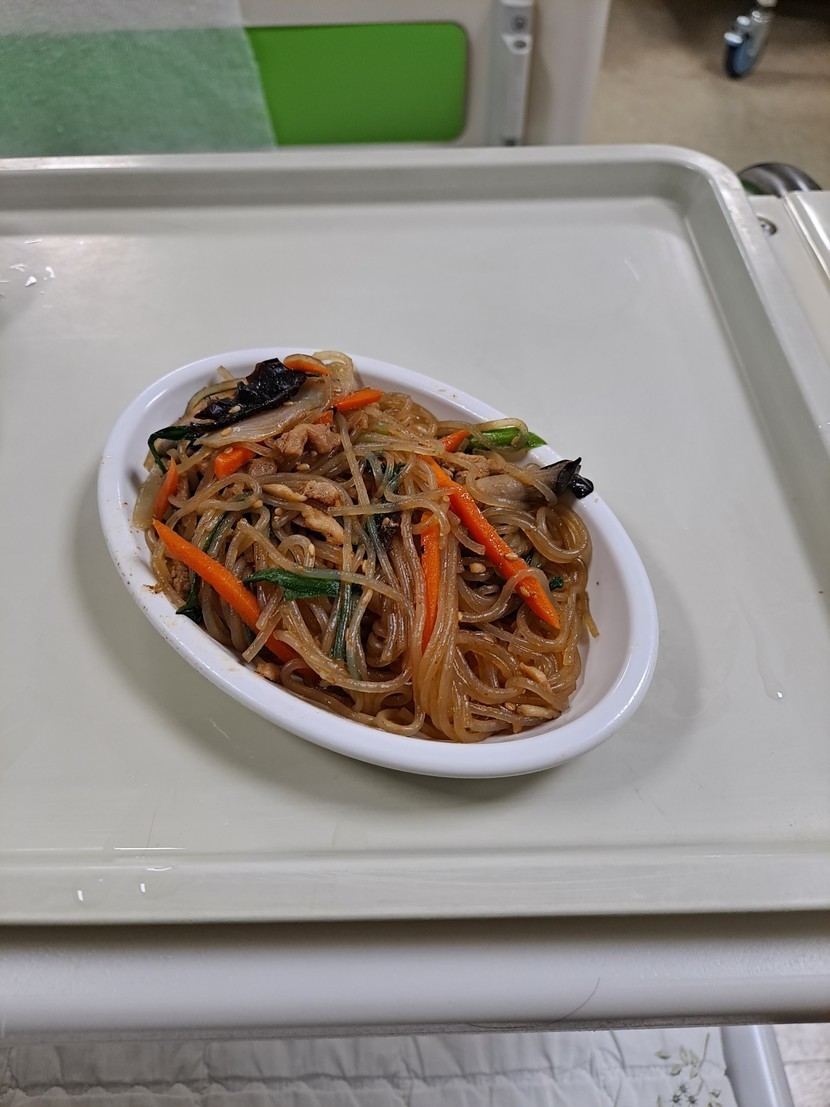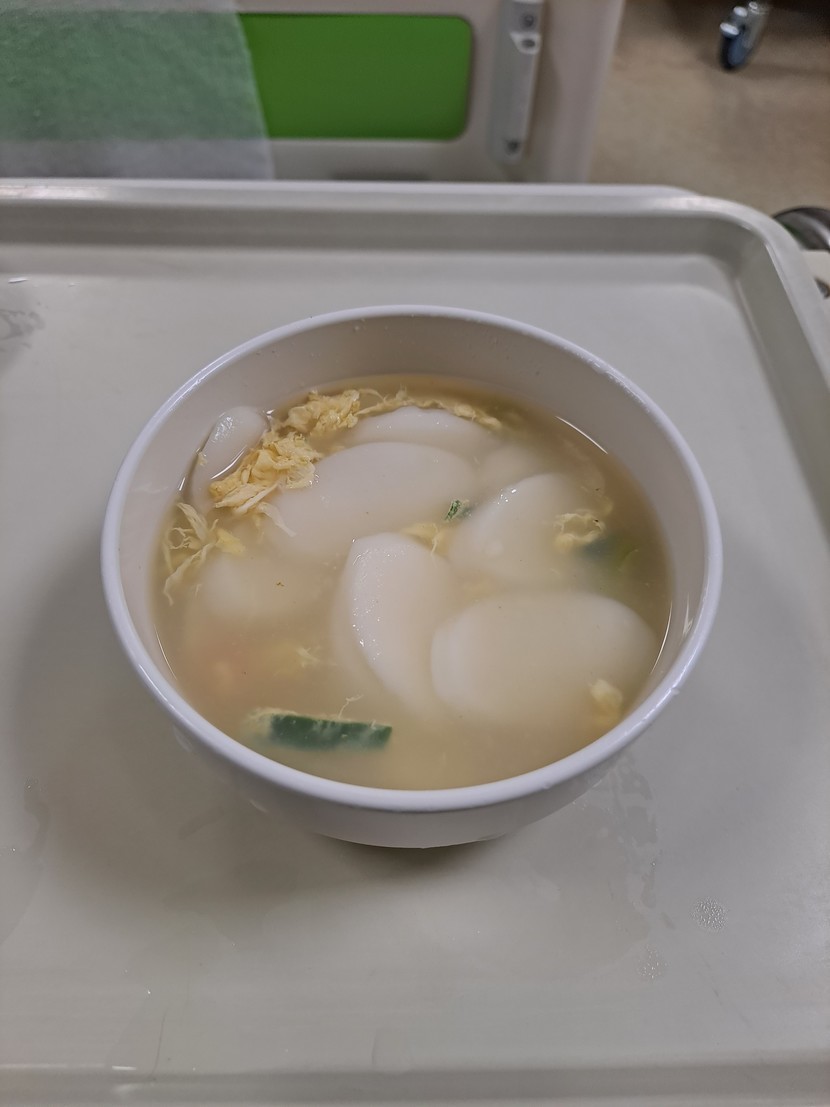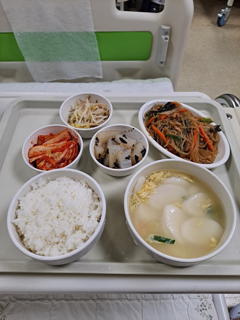 저녁 : 쌀밥 떡국 잡채 청포묵무침 숙주나물 김치