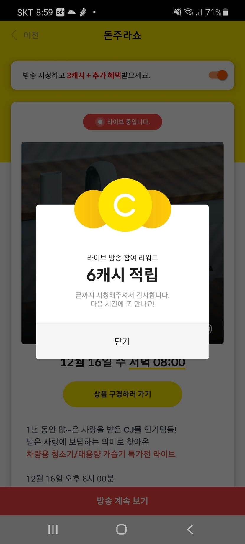 그래서 끝날때 받은게 보시다시피 6캐시입니다...