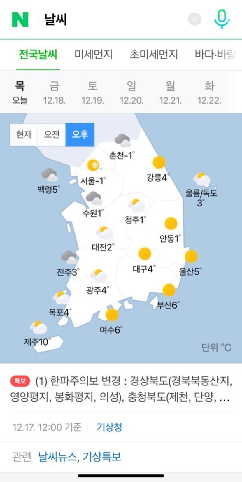 오늘의 날씨 오후 공개☆☆☆