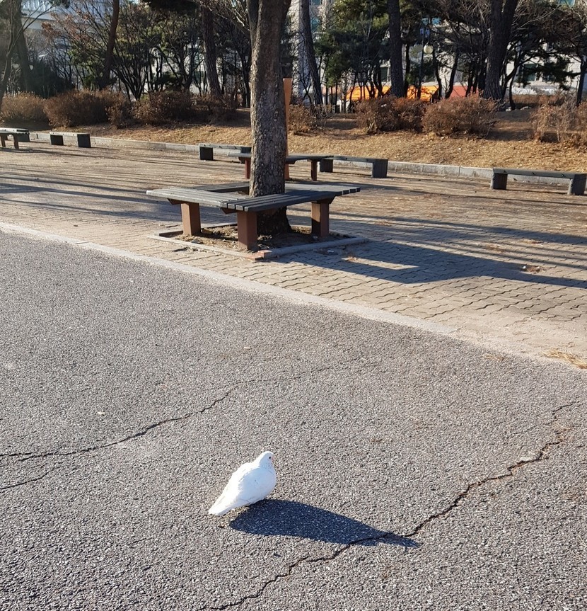 공원에서 흰비둘기 만났어요!