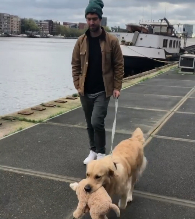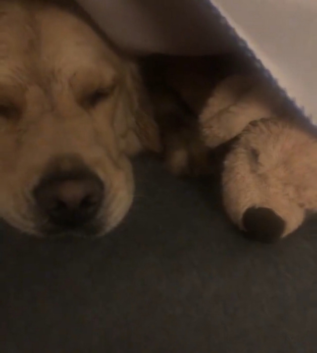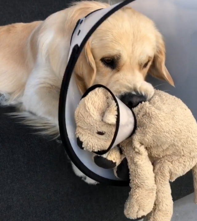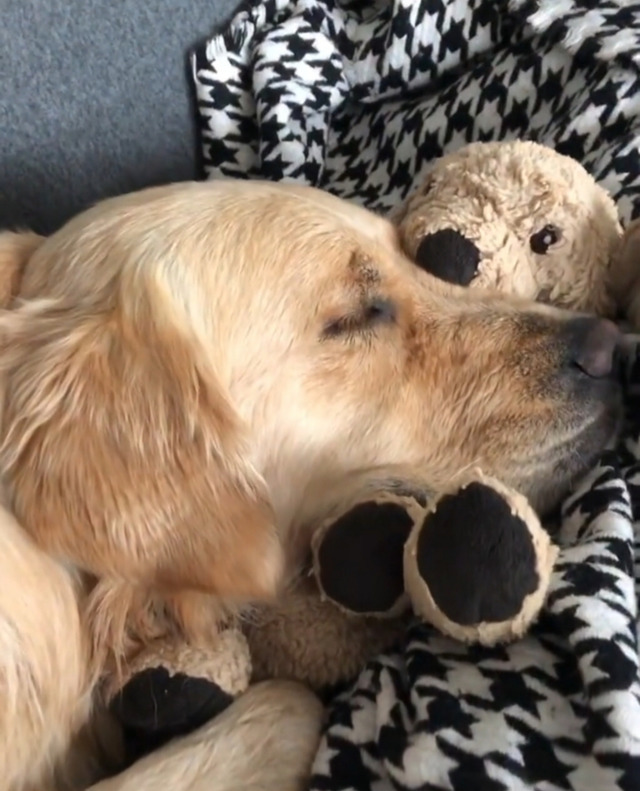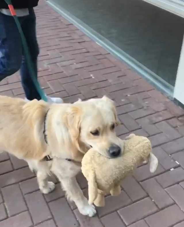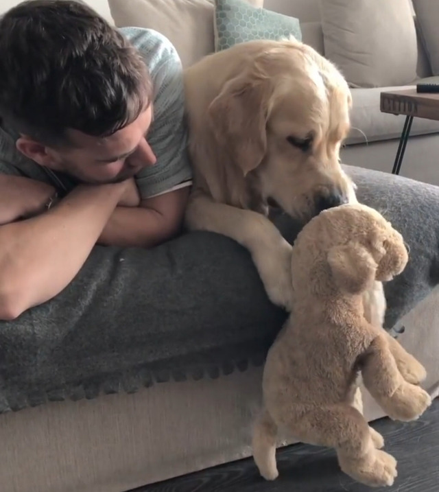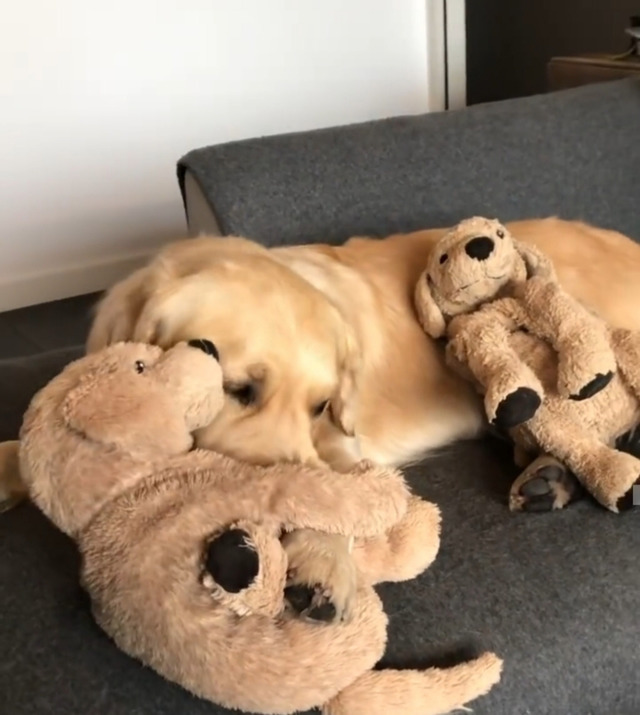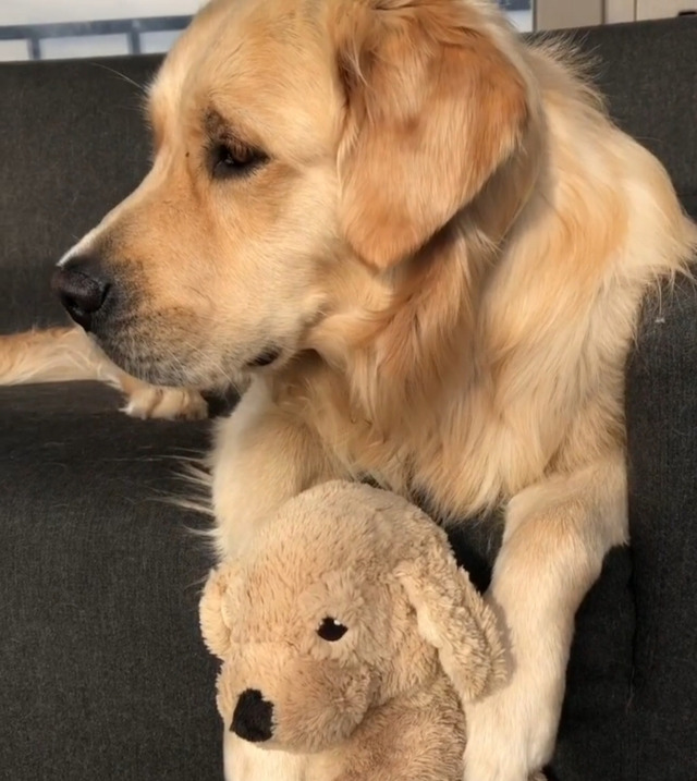 리트리버인형을 좋아하는 리트리버 강아지
