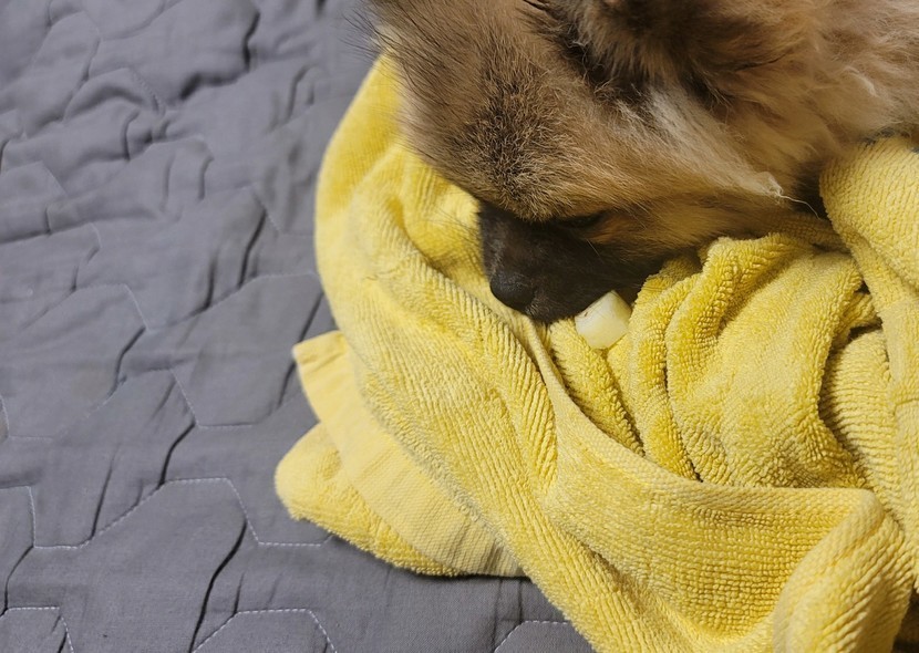 사과물고 조는 강쥐