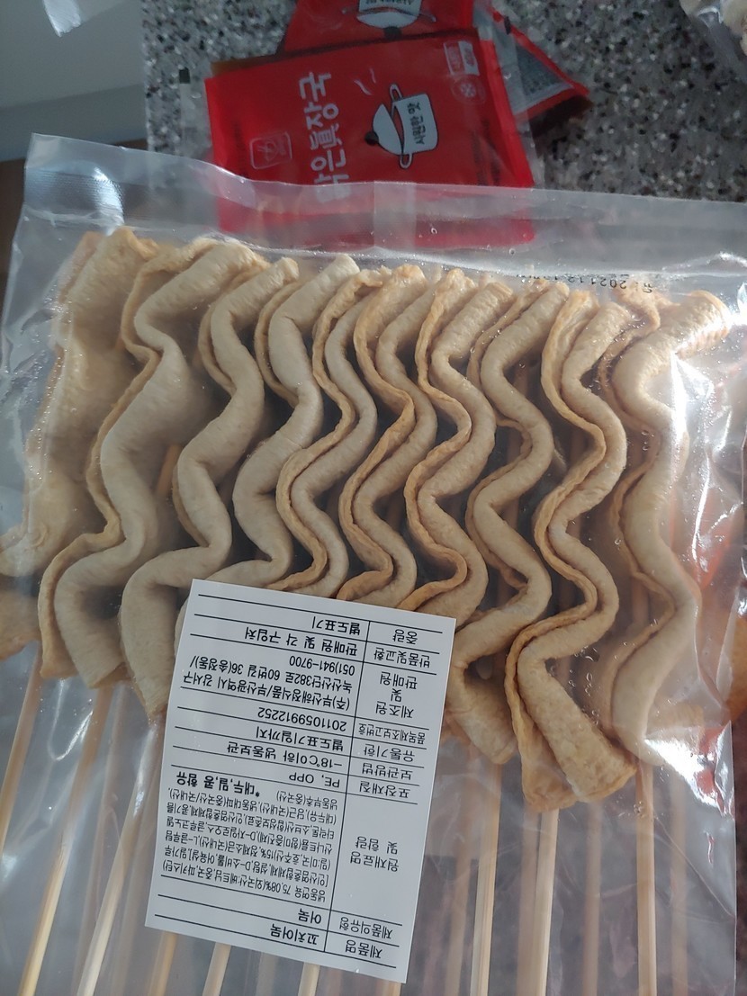 g마켓에서 주문해서 온 꼬치오뎅이랑당면만두랑 냉동실에 넣어놓은 밀떡을 준비합니다.