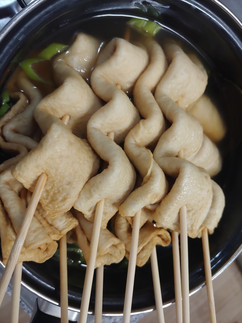 스텐웩에 디포리,멸치,새우,베트남고추,대파뿌리,다시마넣어 팔팔끓으면 꼬치오뎅넣어 끓여줍니다.