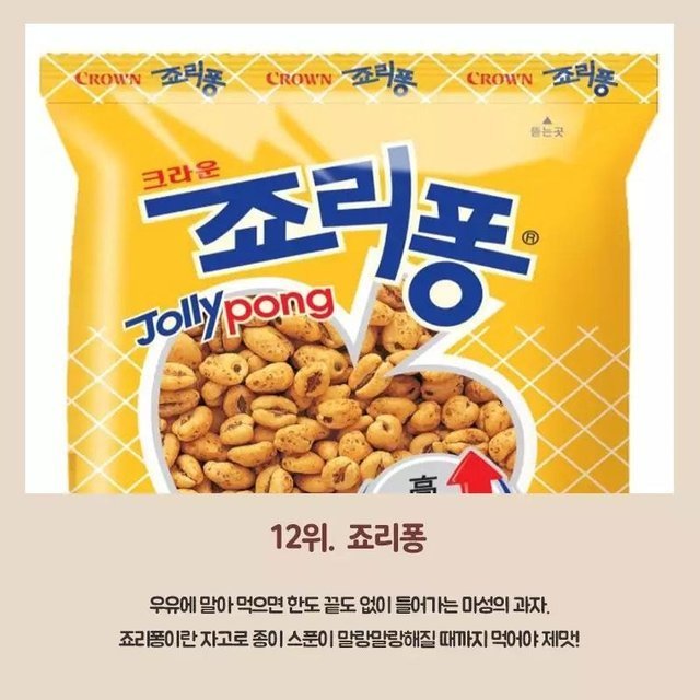 19.12.09 69 읽음 올해 가장 많이 팔린 과자들. rosemary1 구독하기 2 6 콘텐츠의 수익 33 개인적으로는 꼴찌인 조리퐁을 좋아합니다.우유에 타서 먹으면 간단한 아침 식사 ㅎㅎ 6 0 / 300 입력