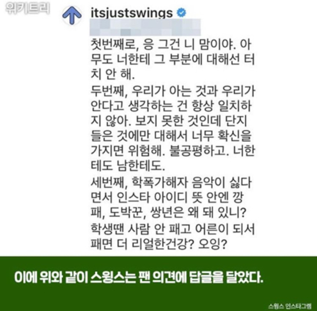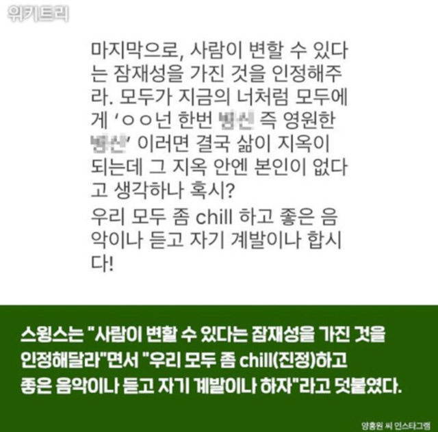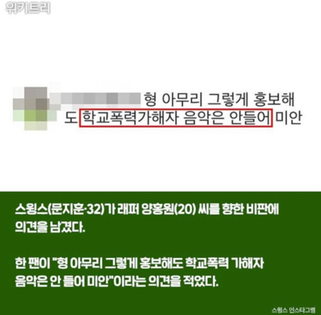 19.08.21 474 읽음 영비(양홍원) 학교폭력 가해 관련 인스타 댓글에 한마디 한 스윙스 r61P7f 구독하기 1 1 콘텐츠의 수익 0 가끔 스윙스가 여혐가사는 안 쓴다고 개념래퍼?로 올려치기 당하는 경우 있는데 ㅋㅋㅋㅋㅋㅋㅋㅋㅋ...나는 쟤가 블랙넛이랑 같은 수준으로 싫음... 개념이 그 수준으로 없거든..와... 진짜 별로... 1 0 / 300 입력