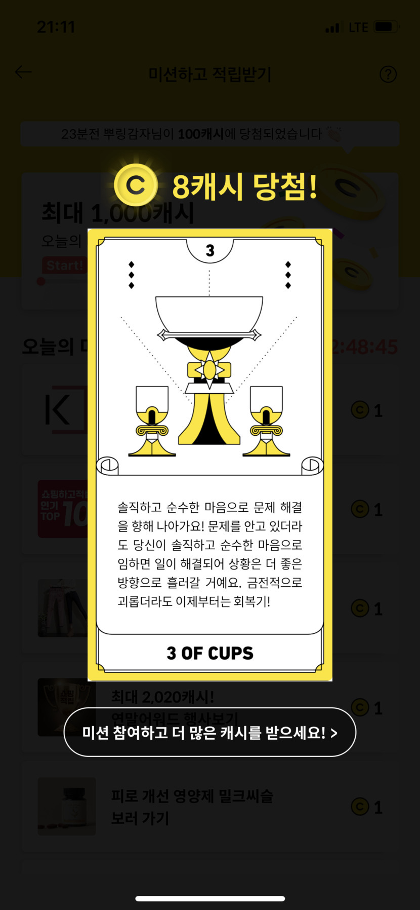 8캐시 받았어요