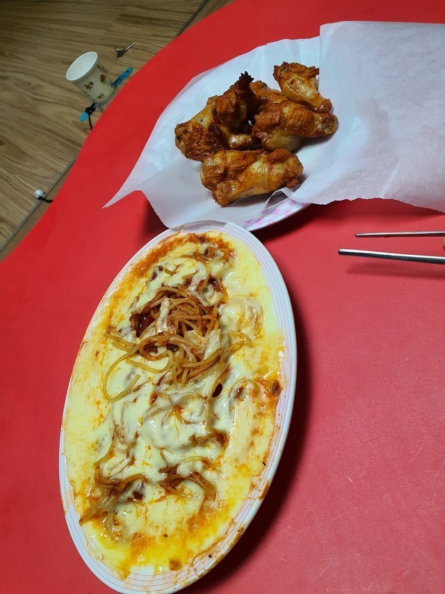12살과9살남매의치즈스파게티와버팔로윙