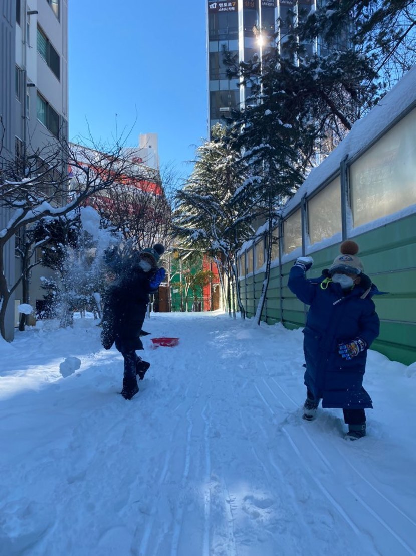 눈속에 뛰노는 아이들