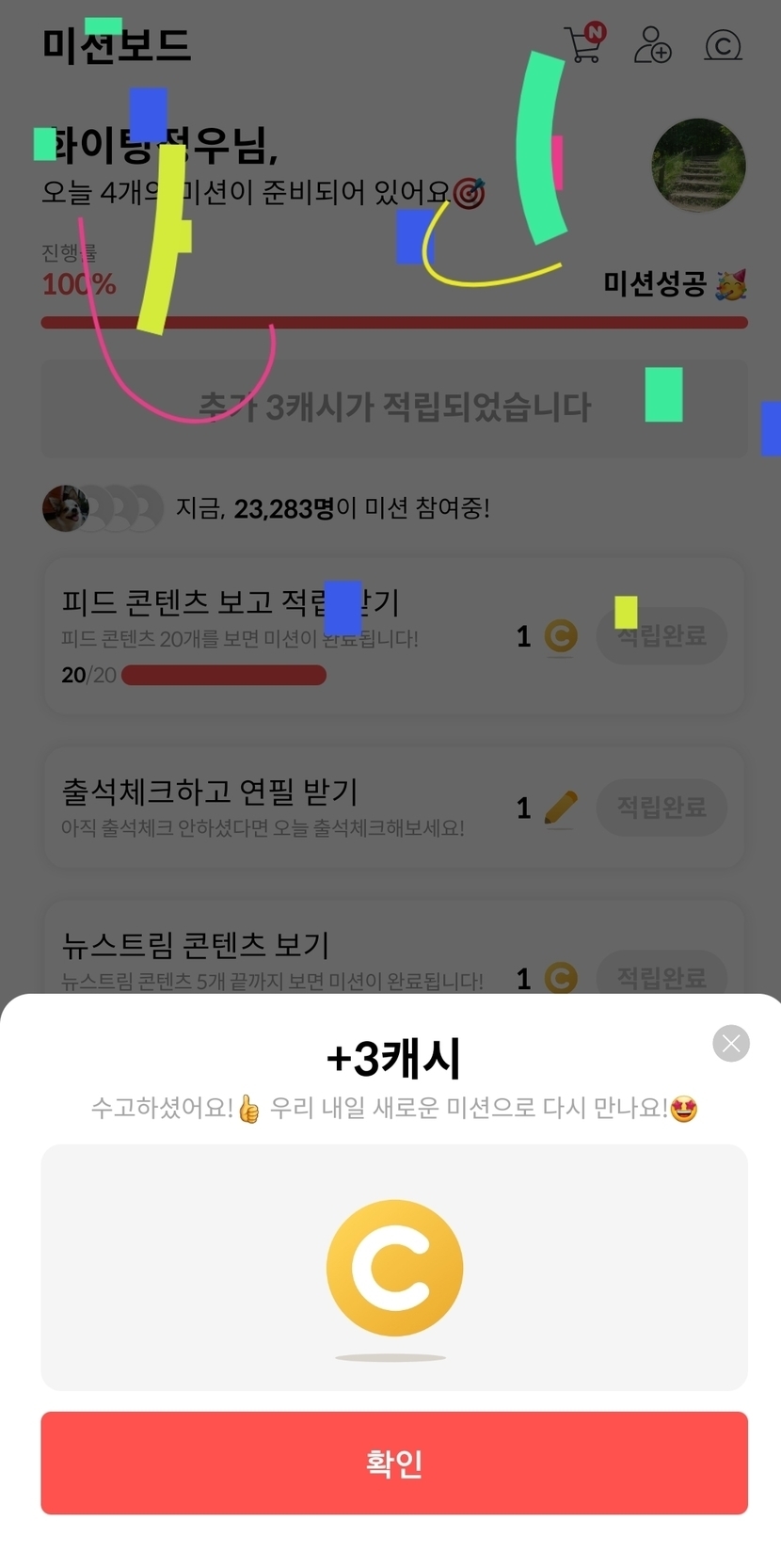 20.12.31 63 읽음 올해 마지막 미션완료 인증! 화이팅정우 구독하기 7 7 콘텐츠의 수익 2 2020년 캐시슬라이드 꾸준히 해왔는데올해 마지막 미션들 모두 클리어 인증!!다들 2020년 마지막날 잘보내시고2021년도 잘부탁드립니다^^ 7 0 / 300 입력