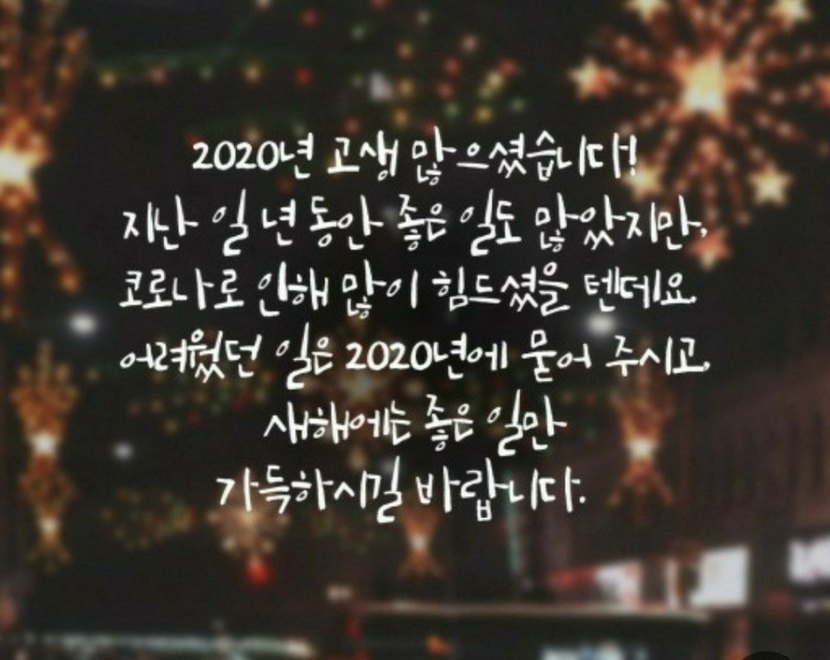 20.12.31 44 읽음 미션마무리 하고 2020년도 마무리 하세요~ VANK 구독하기 1 2 콘텐츠의 수익 3 몸도 튼튼^^마음도 튼튼^^항상 건강하고 즐겁고 행복하게 지내세요~2021년에는 조금더 여유 있는 삶이 됐으면 합니다~^^~ 2 0 / 300 입력