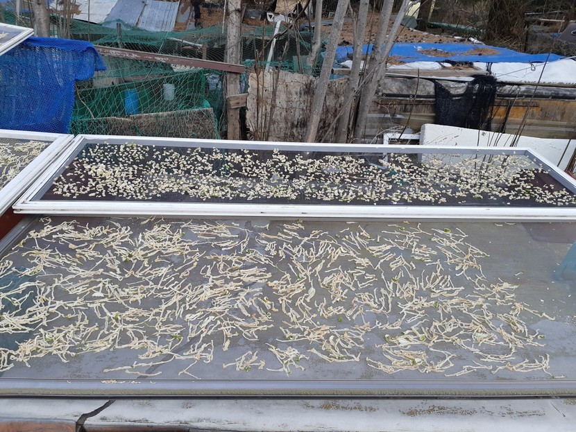무우말랭이 하려고 무우 말리고 있어요