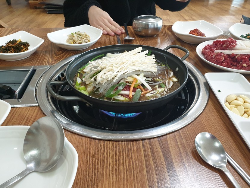 육회랑 소 불고기 먹었어요.