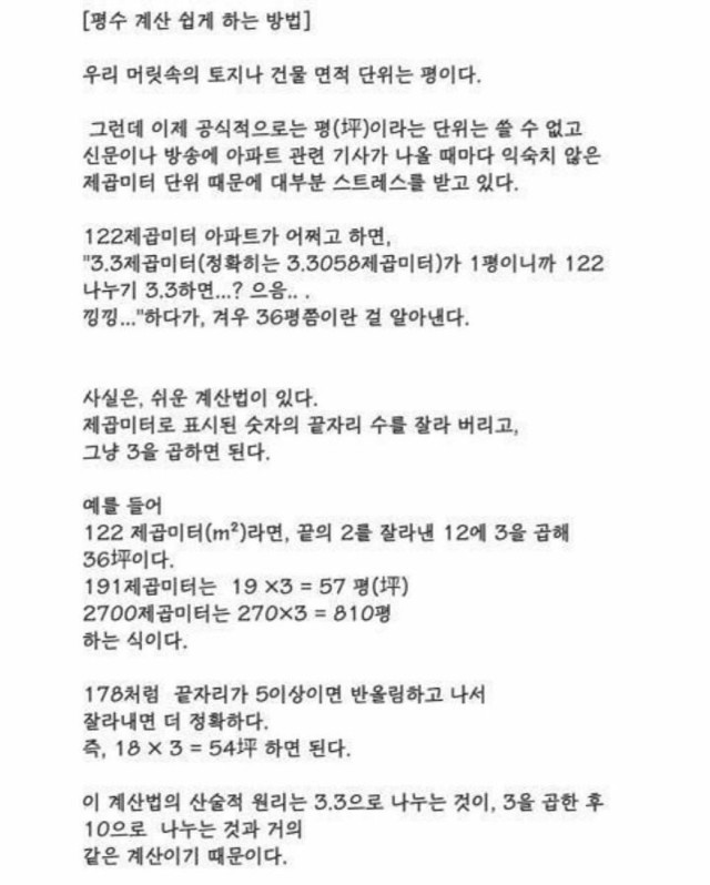 평수 계산 쉽게 하는 방법