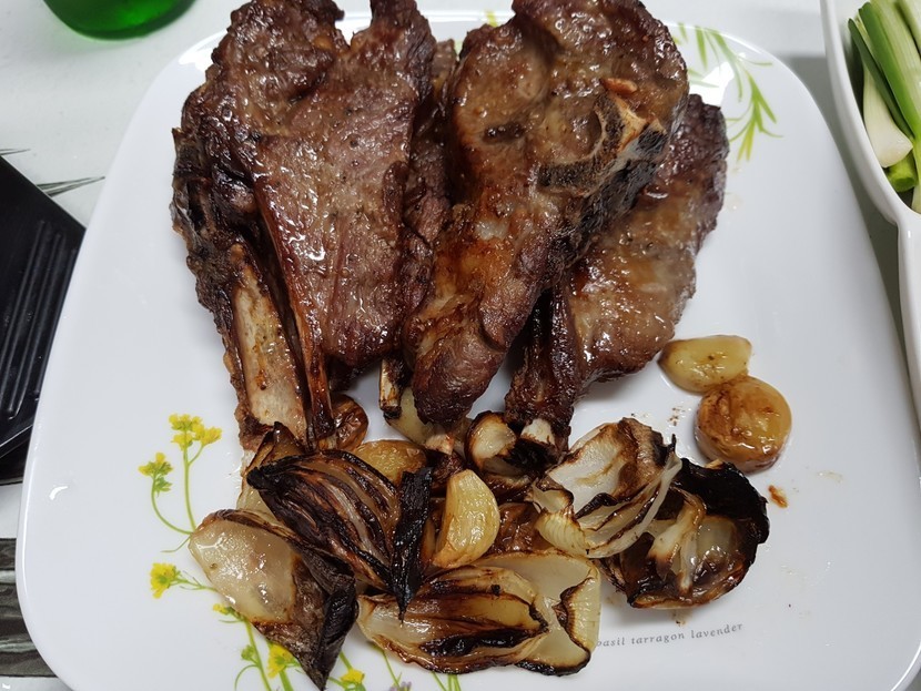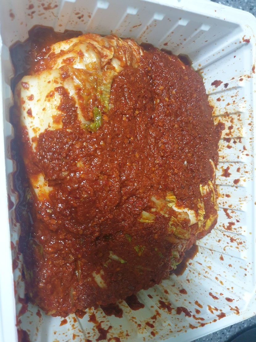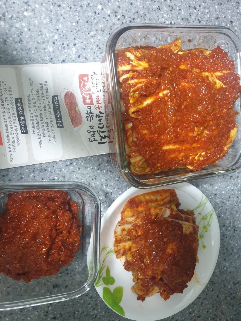 매운실비김치에 갈비 먹습니다