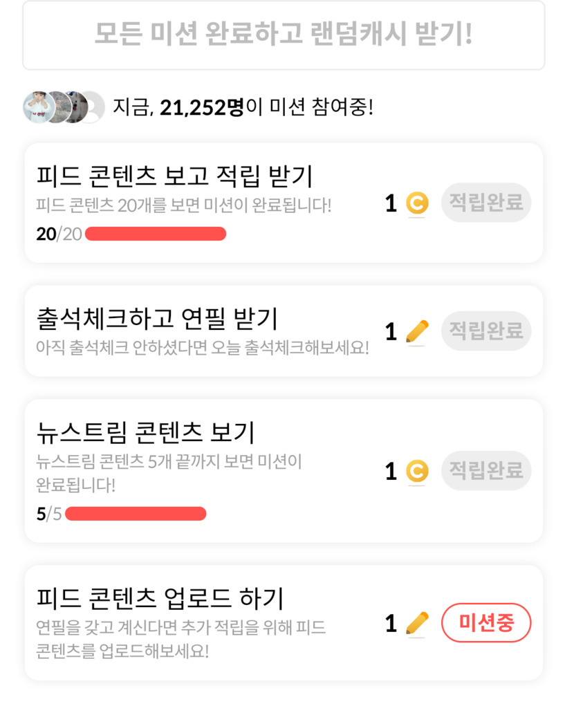 오늘의 미션에 피드업로드하기는 없었으면 좋겠어요