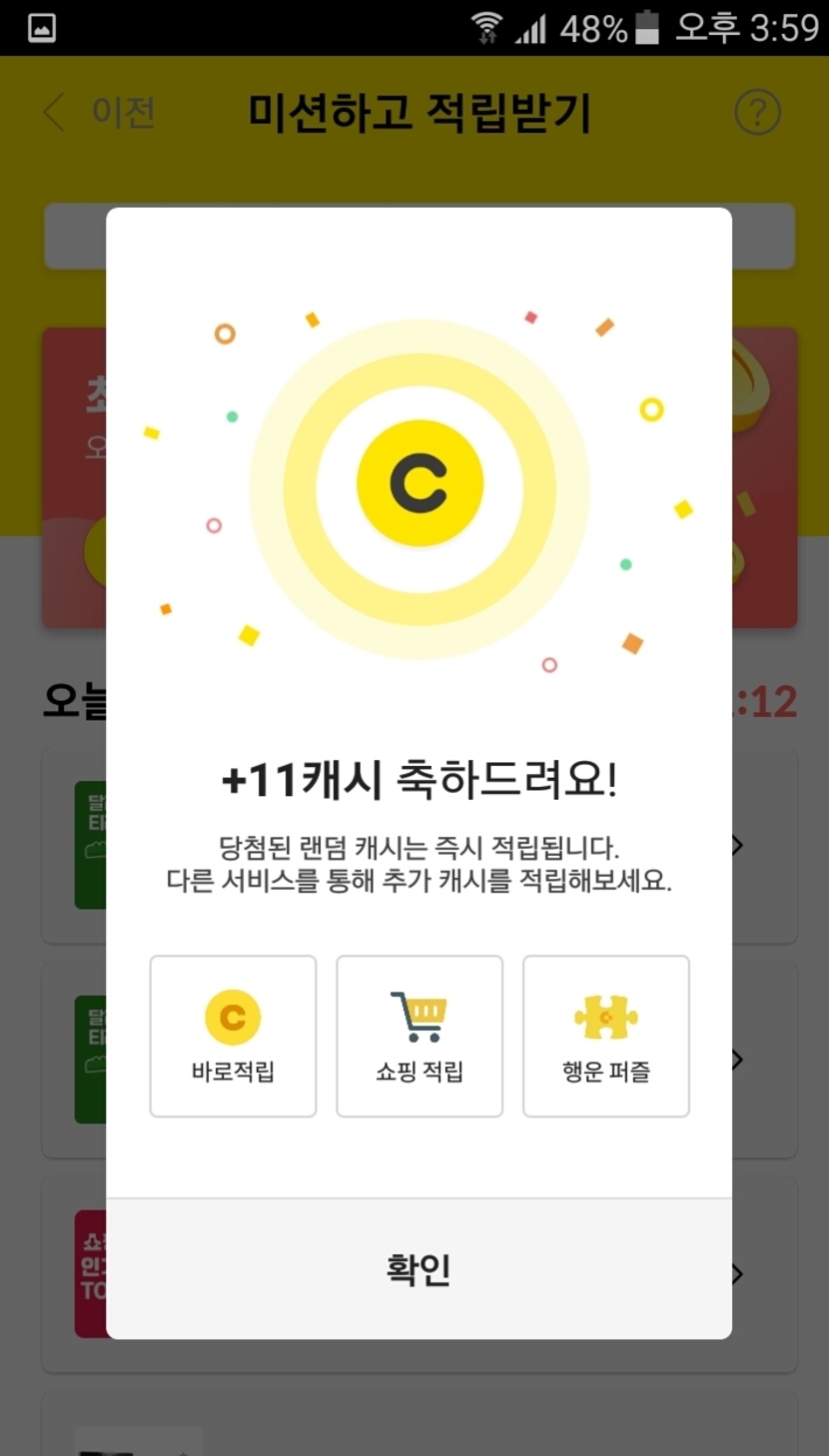 미션하고 적립받기 완성이요