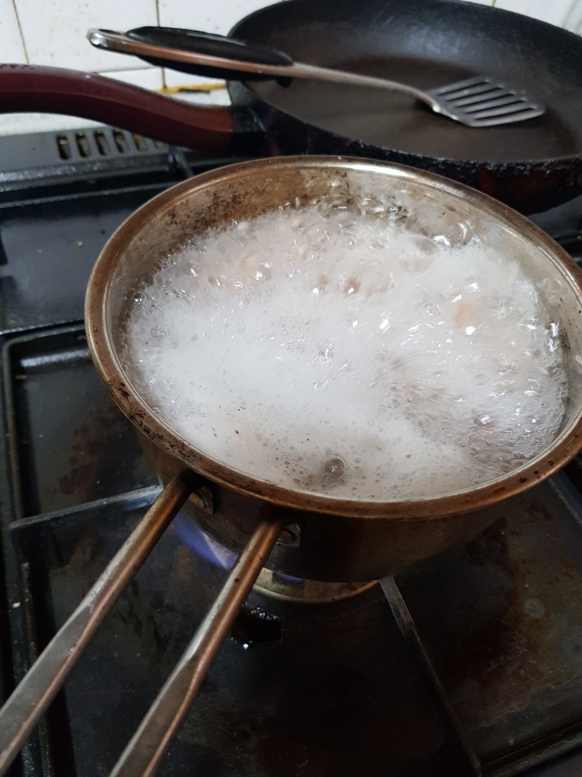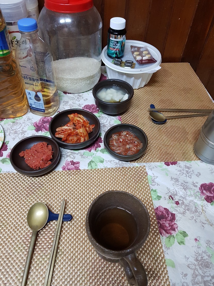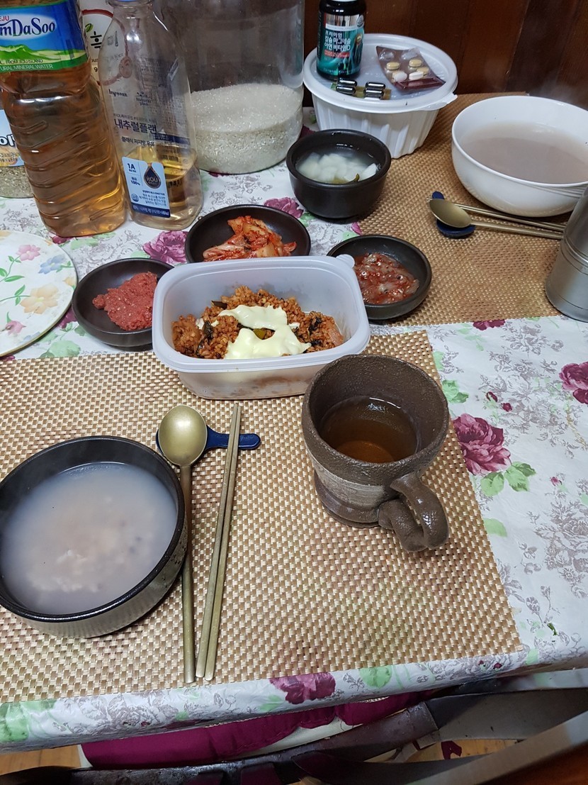 오늘아침도간단히누룽지에뼈없는닭발양념볶음밥했어요