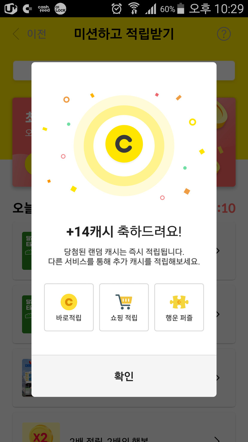 미션적립 성공 나도 100캐시 받았으면
