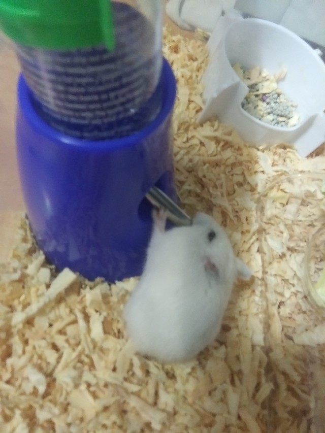 그리고 우리 햄토리는 물을 한꺼번에 많이 마셔요. 그러면 물을 다 마시고 헐떡헐떡 거리다가 또 쳇바퀴를 돌리고요! 높은데에 올라가 자기 집을 구경하기도 해요.