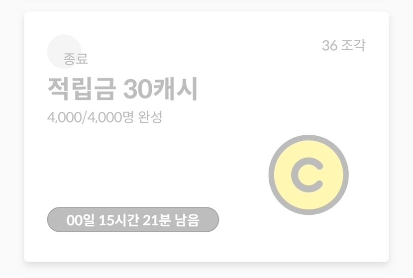 적립금 30캐시가 사라졌어요.