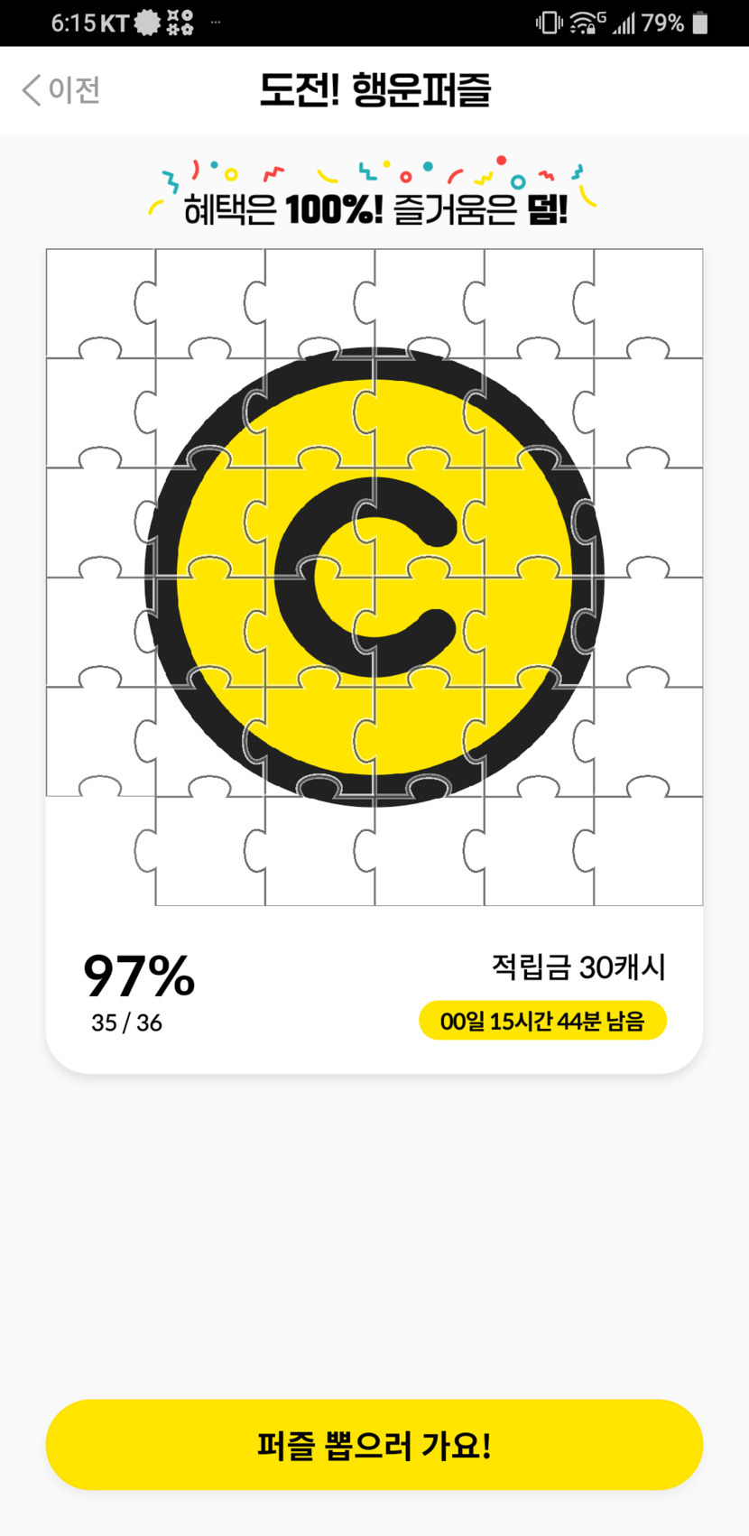 21.01.20 220 읽음 퍼즐 물건너 간듯.ㅎㅎㅎㅎ 루나(min) 구독하기 61 58 콘텐츠의 수익 20 4개만 맞추면 끝나는거라 이번에 완료 될줄알았는데 15번 중에 3번 나와서 여기서 멈춰버렸네요 한시간뒤에는 기회가 없을거고..정말 복불복 운이군요.ㅎㅎ맛있는 저녁 드세요♥♥♥♥ 58 0 / 300 입력