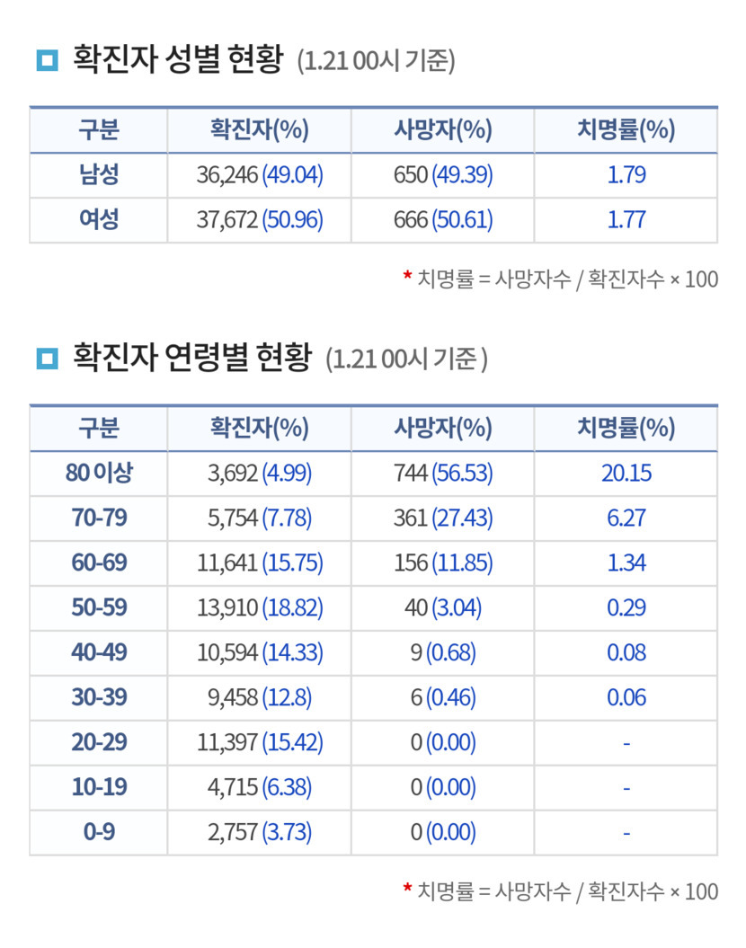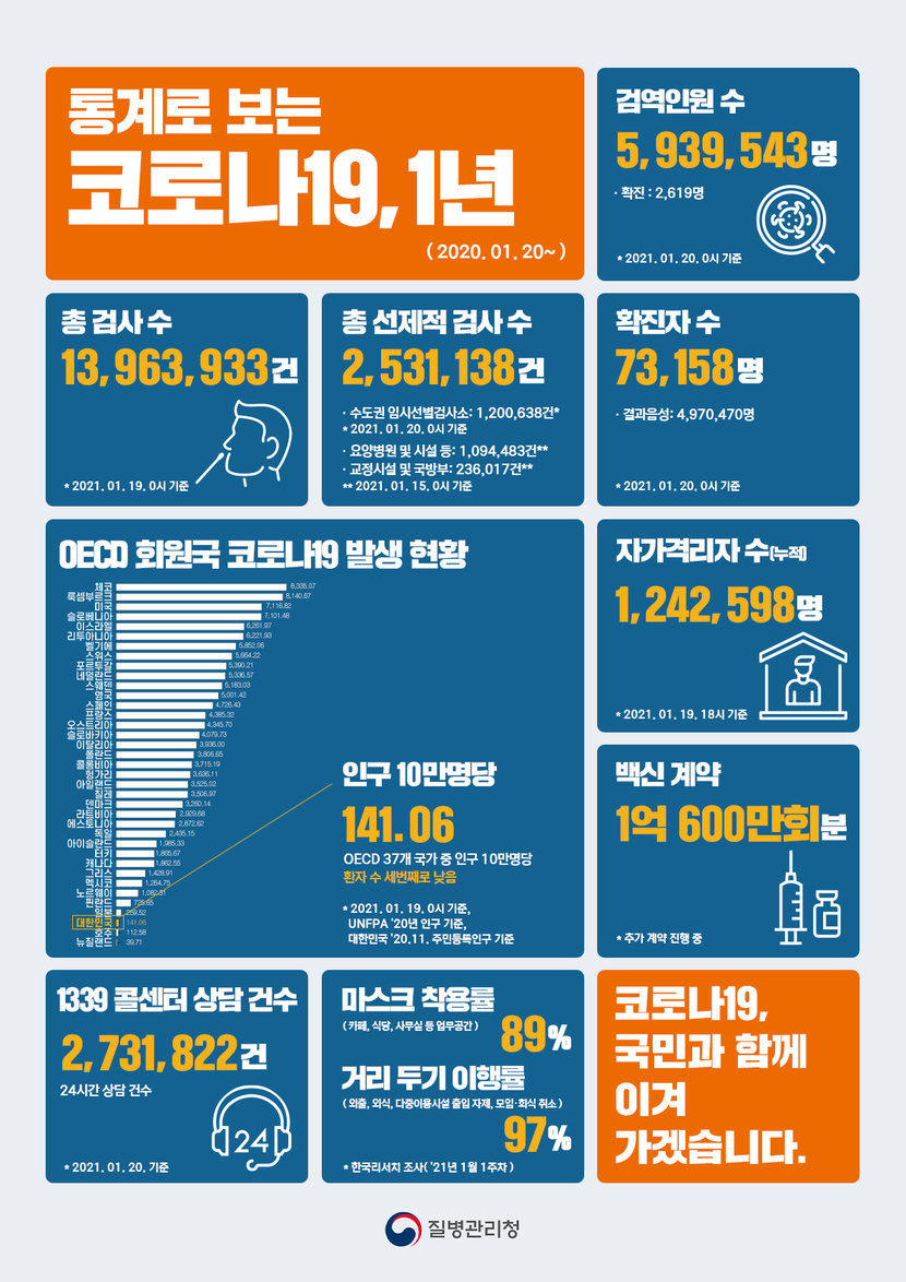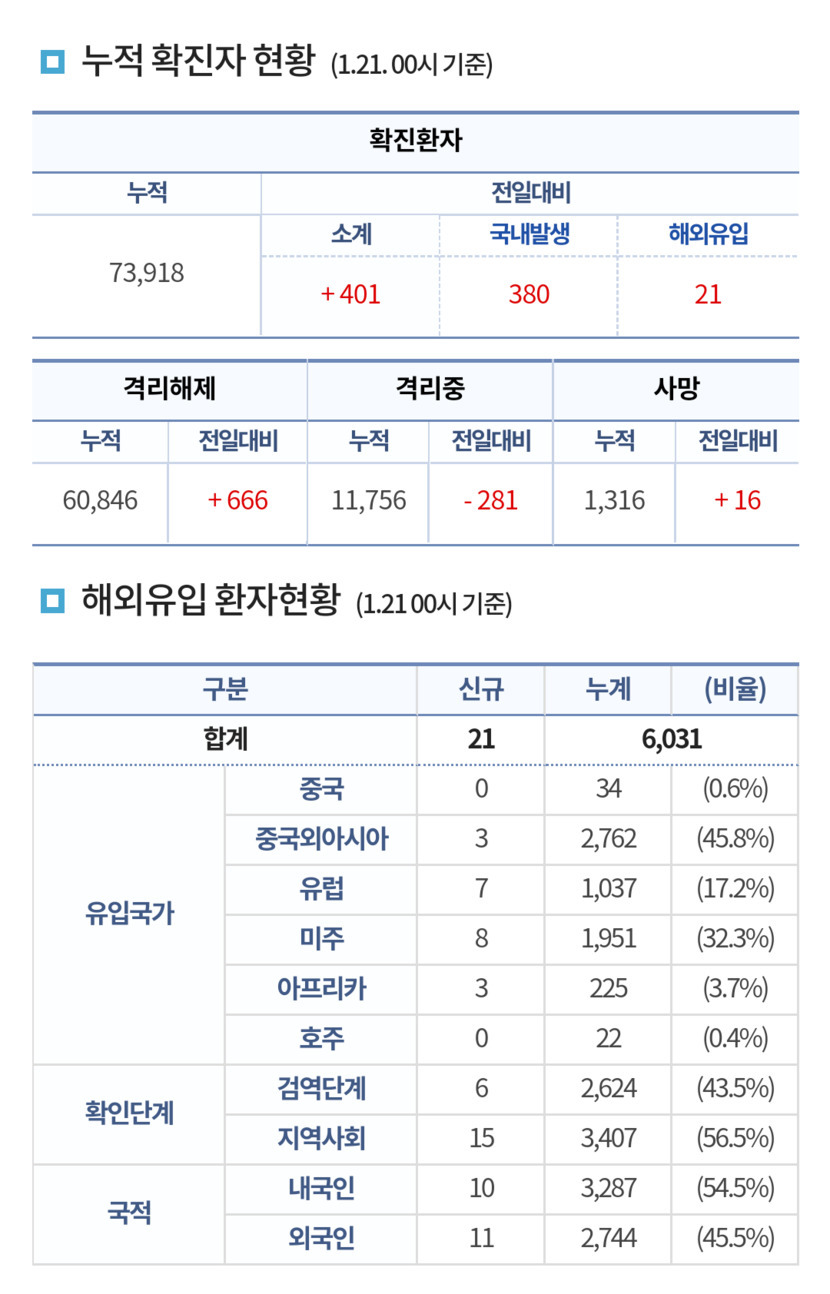 코로나 현황 (2021.1.21. 0시 기준)