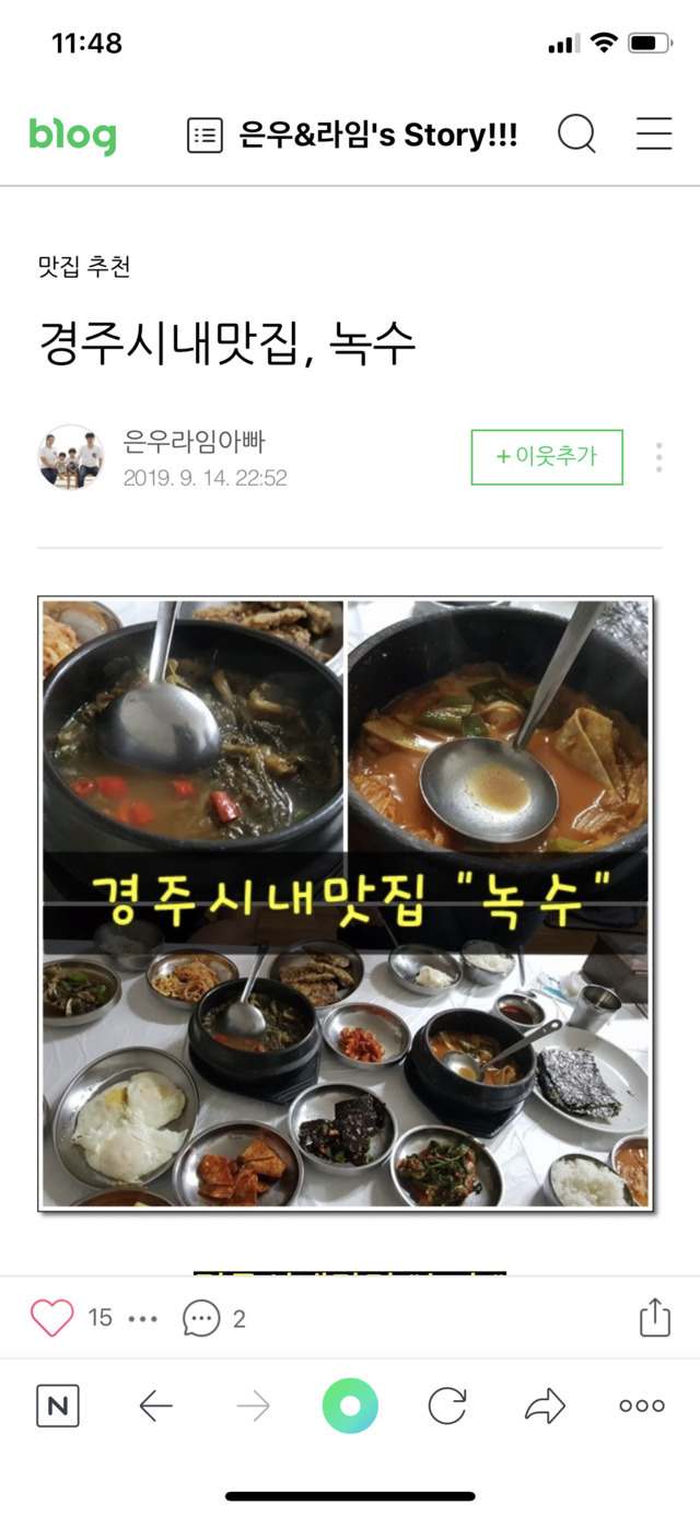 19.12.13 108 읽음 경주 맛집 kimbanggeu 구독하기 0 2 콘텐츠의 수익 20 양심적으로 누구나 가서 먹었을때 무조건 성공하는집인데요 사장님이 바로 후라이도 보는데서 꾸워주세용 전 다른지역인데도 경주를 저 시래기먹으로 가요~~~ 꼭 한번은 꼭 꼭 가보시라고 올려봅니다양심적으로 누구나 가서 먹었을때 무조건 성공하는집인데요 사장님이 바로 후라이도 보는데서 꾸워주세용 전 다른지역인데도 경주를 저 시래기먹으로 가요~~~ 꼭 한번은 꼭 꼭 가보시라고 올려봅니다 2 0 / 300 입력