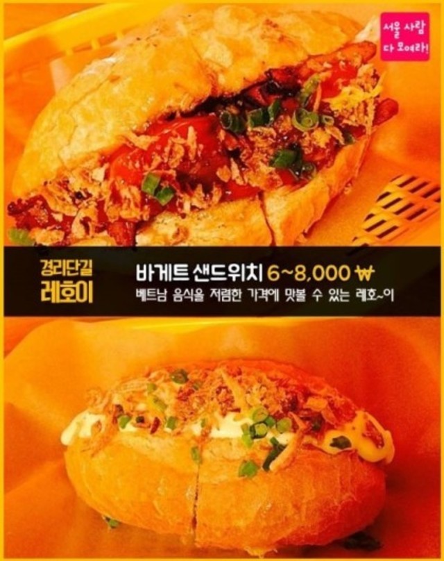 돼지고기와 각종 야채, 소스가 들어간 바게트 샌드위치 6~8,000원!