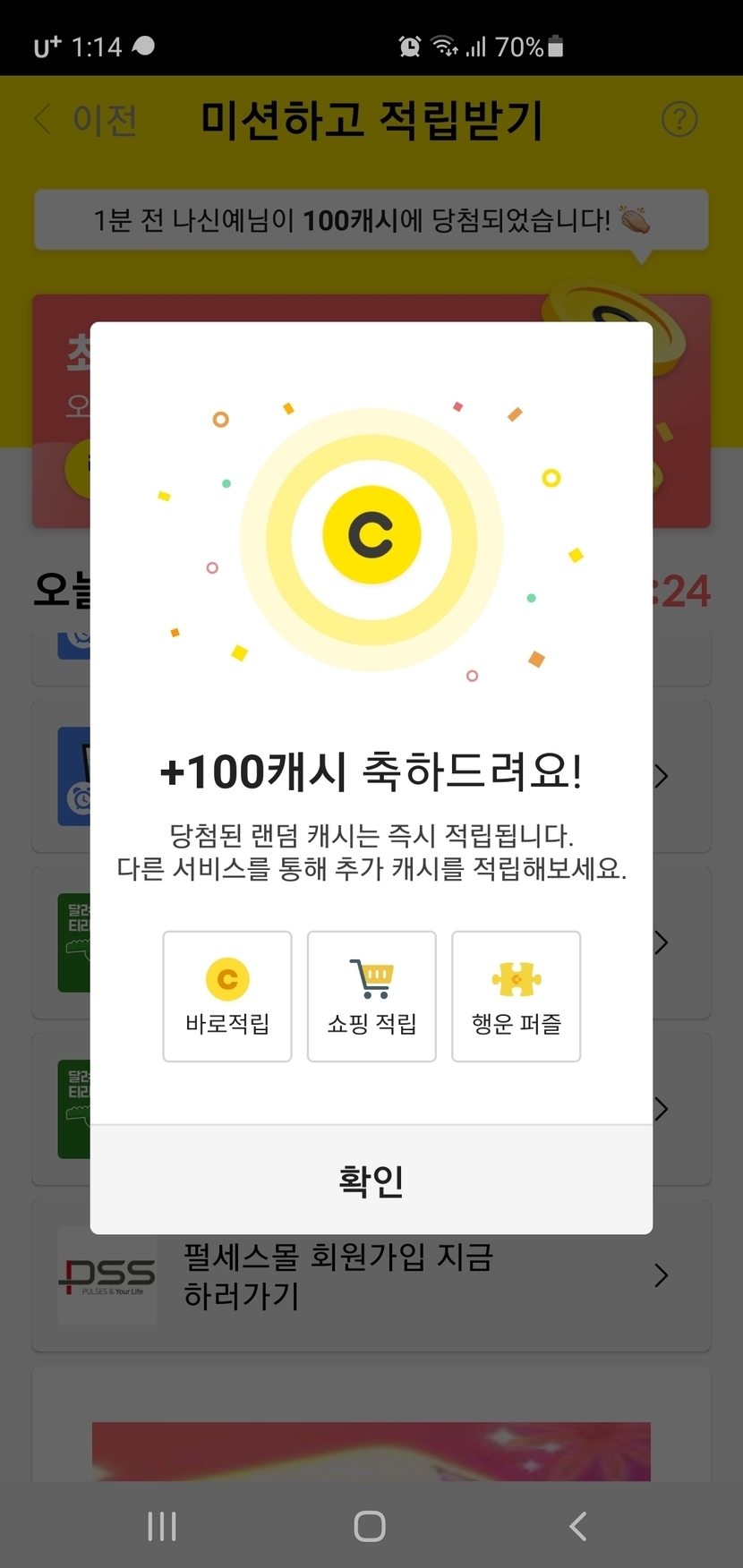 오랜만에 받는 100캐시에요!