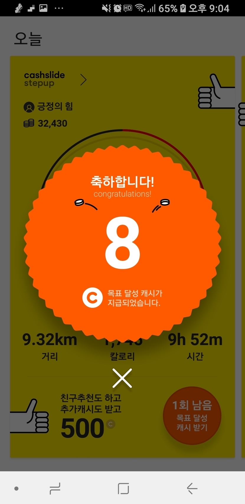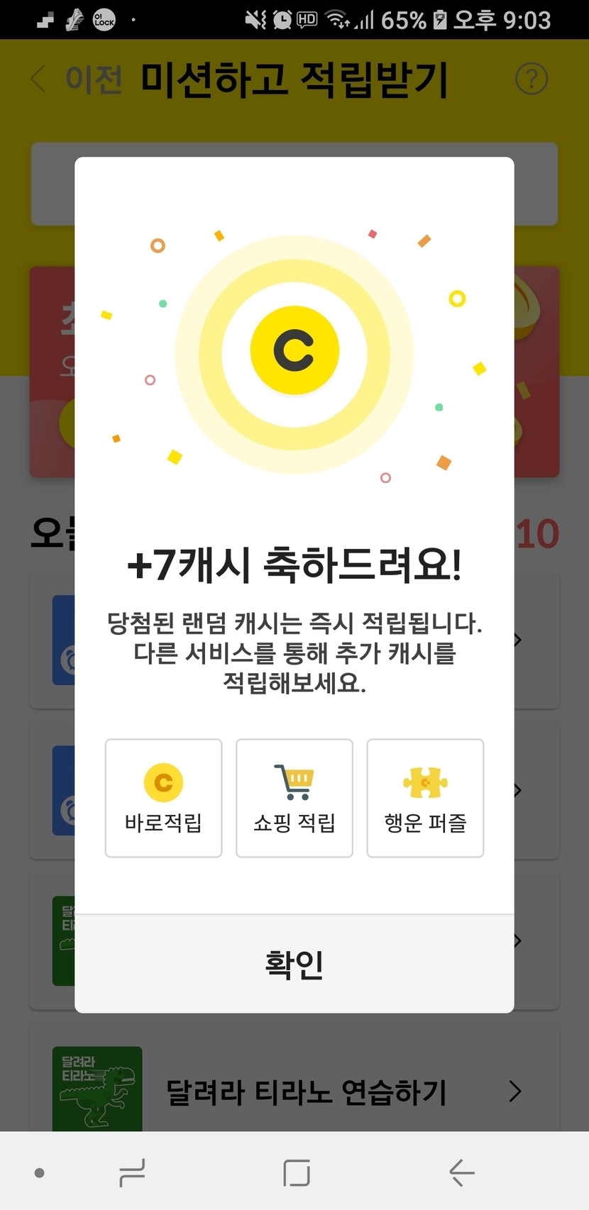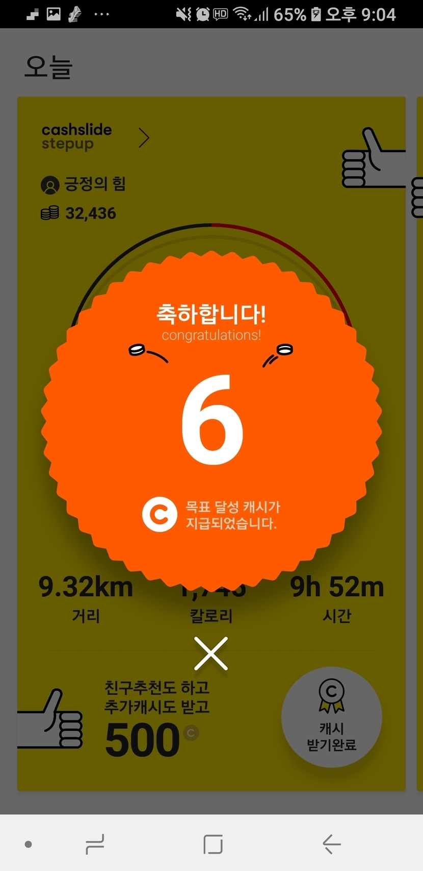 미션 성공 캐시와 걷기 성공 캐시~~